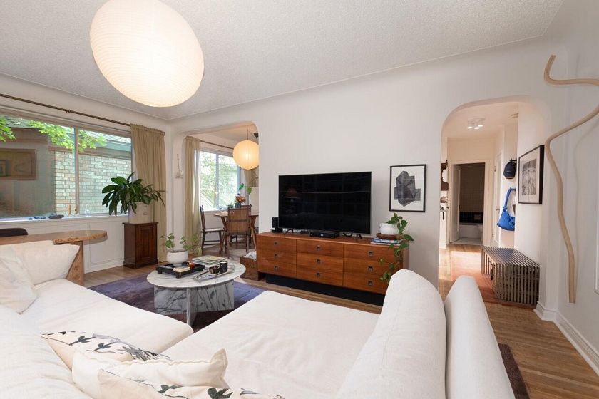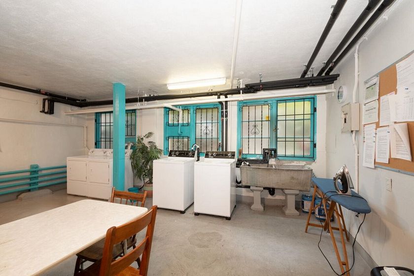 Sherwood Lodge: 22 homes in unique art deco style coop features large square rooms, over-height ceilings, archways, hardwood & softwood floors, coved ceilings, vintage tilework & cabinets. 103, on main level, above ground, on quiet side of the building overlooks a treed garden space. History buffs will be drawn to character & style of bygone era in solid building. Kitchen & bath are close to original with smart upgrades to ensure comfort for modern living. Plumbing & electrical have been upgraded. Spacious living area features wall of windows, built-ins to display books, treasured keepsakes & flows to formal dining room extending the decor of glass, hardwood, archways & coved ceilings. Quiet bedroom offers peaceful oasis. Generous storage A gem! OPEN SAT OCT 11th 2-4