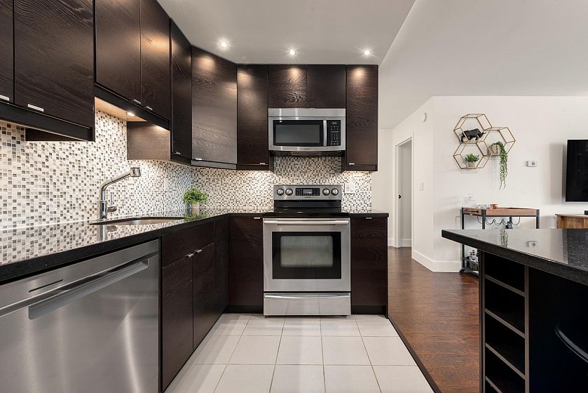 Discover urban living at its finest in Talisman Tower, perfectly positioned in the heart of lively Lower Lonsdale. This beautifully designed 1-bedroom, 1-bathroom residence offers 580 sq. ft. of efficient living within a solid concrete building, featuring a smart layout, modern renovations including custom kitchen island, cabinets, new appliances and upgraded lighting. The bright living area boasts floor-to-ceiling windows and a covered balcony, ideal for morning coffee or evening wind-downs. Includes 1 parking stall and storage locker. Residents enjoy amenities such as a fitness centre, guest suite, workshop, meeting room, visitor parking, and on-site caretaker. Steps to Lower Lonsdale restaurants, breweries, Lonsdale Pier, Shipyards. Roof, membrane, piping, elevator all done.