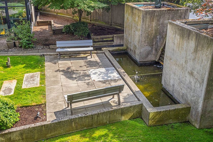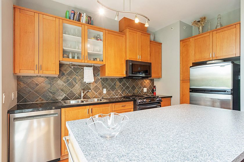 BEST PRICED junior 1-bedroom + den at RETRO in Marpole! Set in a solid concrete building, this beautiful home features soaring ceilings, rich fir floors, and tall windows that fill the space with natural light. Open kitchen shines with newer stainless steel appliances, a handy island breakfast bar, and east facing balcony for morning coffee. Cozy up by the gas fireplace, or unwind in the lush garden courtyard. Enjoy in-suite laundry, a well-equipped fitness center, bike room, parking, and storage. Pet-friendly and rental-ready—ideal for first-time buyers or savvy investors. Just steps away from cafes, shops, parks, and direct transit to YVR, downtown, and UBC! Don’t delay!