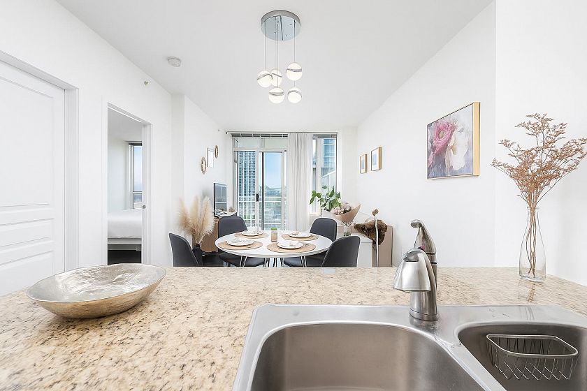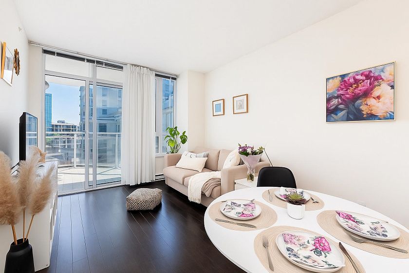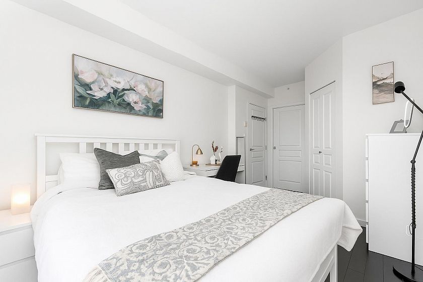 Experience Mountain/roofdeck View living in this well designed 1BR + den home, located at the center of modern amenities at the King Ed Village! An open-concept layout wastes no space; functional kitchen offers extensive granite counter space; a roomy bathroom can be accessed from both BR & Living room; a spacious BR+ walk-in closet makes a perfect retreat space w/ privacy. A large balcony opening to the courtyard, brings beautiful mountain/city/roofdeck garden views to charm & unwind. Perfect sized Den for a home office/storage. Quietly tucked away from traffic noise yet just steps to transit, shipping, library, parks, restaurants and cafes. Includes 1 parking + 1 locker. Enjoy access to the building's recreation center, gm, bike room, etc. Open: Sun/Nov2, 2-4pm