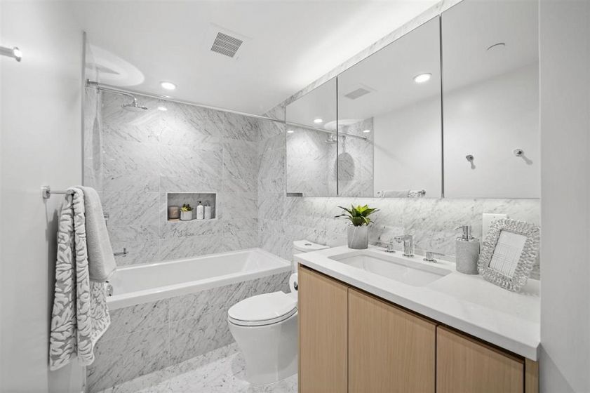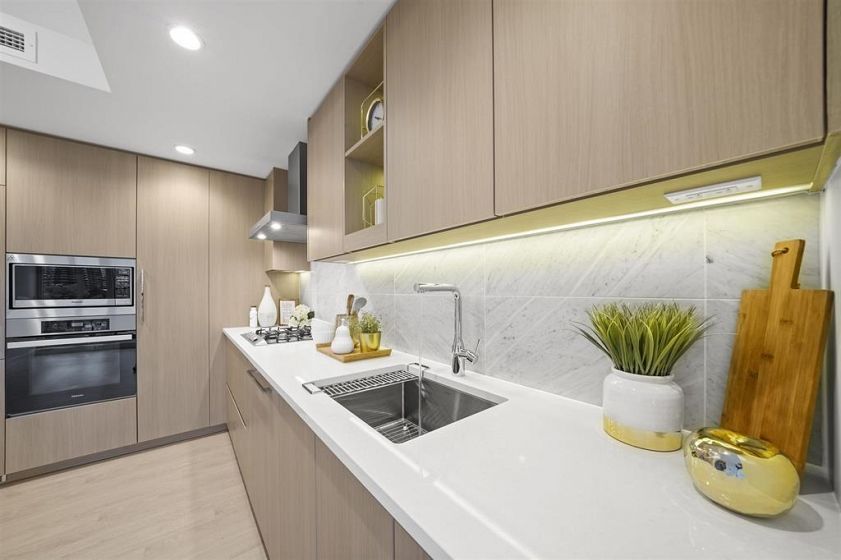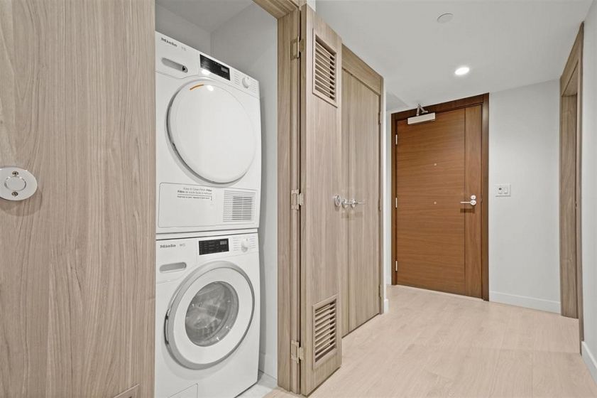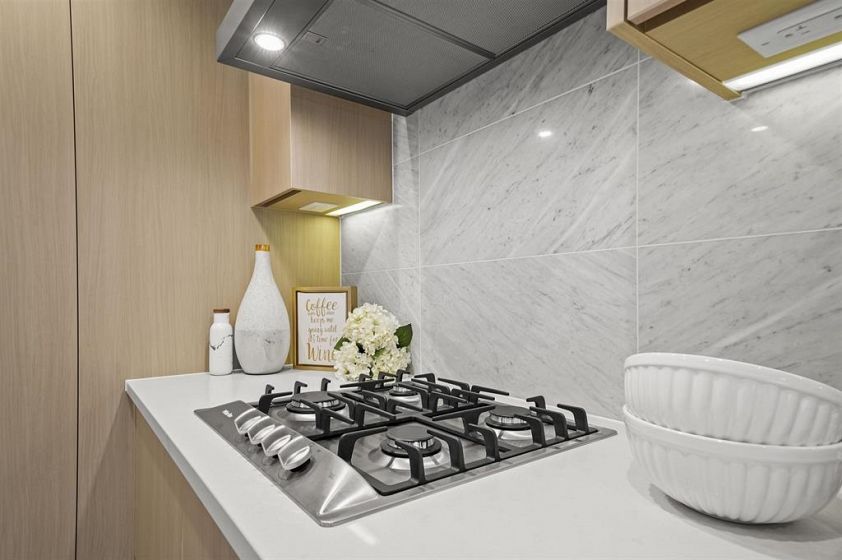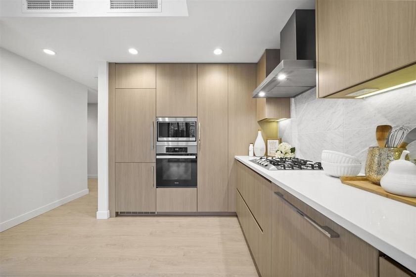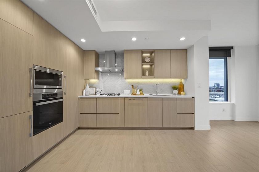 Luxurious 1 Bed + Den corner unit by Concord Pacific with stunning city, park, and water views. Naturally bright with floor-to-ceiling windows, premium flooring, and refined craftsmanship throughout. Features a modern gourmet kitchen with gas stove, Miele appliances, quartz counters, and designer cabinetry. Includes built-in closet, EV-ready parking, A/C, and access to top-tier amenities—concierge, fitness centre, garden, library, meeting room, and in-house Touchless Car Wash.