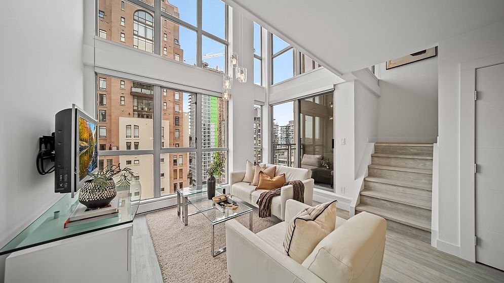 Soaring above Yaletown on the 18th floor, this double-height loft captures cinematic False Creek views through 16’4” walls of glass. The Grace forms your architectural backdrop, evoking a New York skyline while protected sightlines over David Lam Park ensure the view endures. A $70K designer renovation brings Kentwood hardwood, quartz counters, and Hans Grohe fixtures, balancing modern polish with warmth. Just steps to the Seawall, SkyTrain, and Vancouver’s best dining, this is a rare offering that fuses Yaletown’s historic charm with a bold, contemporary edge. The Metropolis offers a thoughtful mix of calm and connection—an intimate community with gym, hot tub, and pet-friendly living amid Vancouver’s most storied streets.