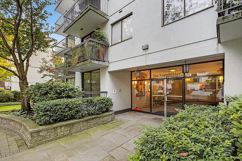Coveted location near the Aquatic Centre, Davie Village, Sunset Beach, Seawall, Seabus to Granville Island, and Yaletown-Roundhouse SkyTrain. This bright SE corner unit sits above ground in a very well-maintained concrete freehold building with proactive strata and live-in caretaker. The unit is clean and spacious with newer appliances and a quiet garden view. Step outside to cafés, dining, and the seawall—perfect for morning runs or sunset strolls. Parking available to rent from strata; storage lockers upon request. Please note: No in-suite laundry and no pets allowed.