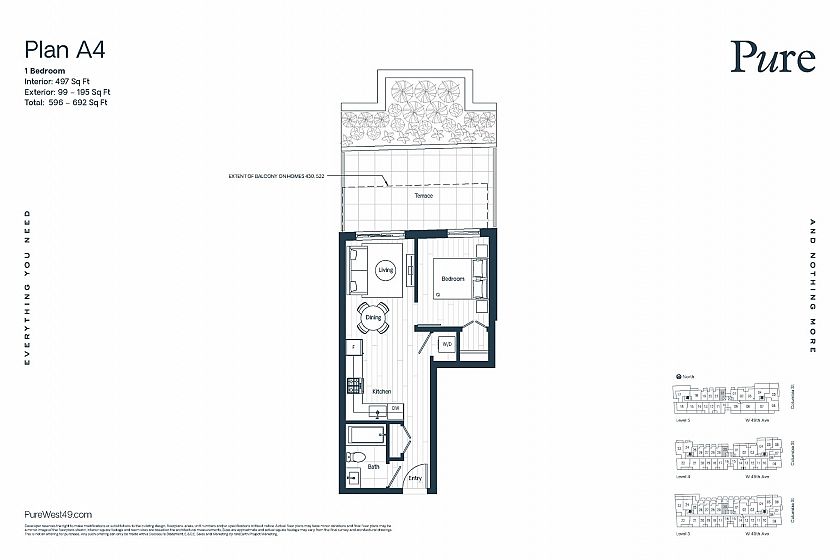 Introducing Pure, a 'biophilic centered' designed condo development with pure intention. Pure is centrally located at 49th & Columbia, across from the popular Langara Park, in the West Side’s rapidly evolving Cambie corridor. Coming home never felt this good. Comfort and functionality have been prioritized above all else. Our homes offer two nature infused colour palettes inspired by water and earth that give interiors a warm, seamless feel. This Mountain view home comes complete with EV ready parking and features 1bed/1 Bath at 497sf of thoughtful design while incorporating nature-inspired elements. Entertain your guests year round on your oversized, private rooftop patio. Contact us today for current buyer's incentives. Completion Spring 2026