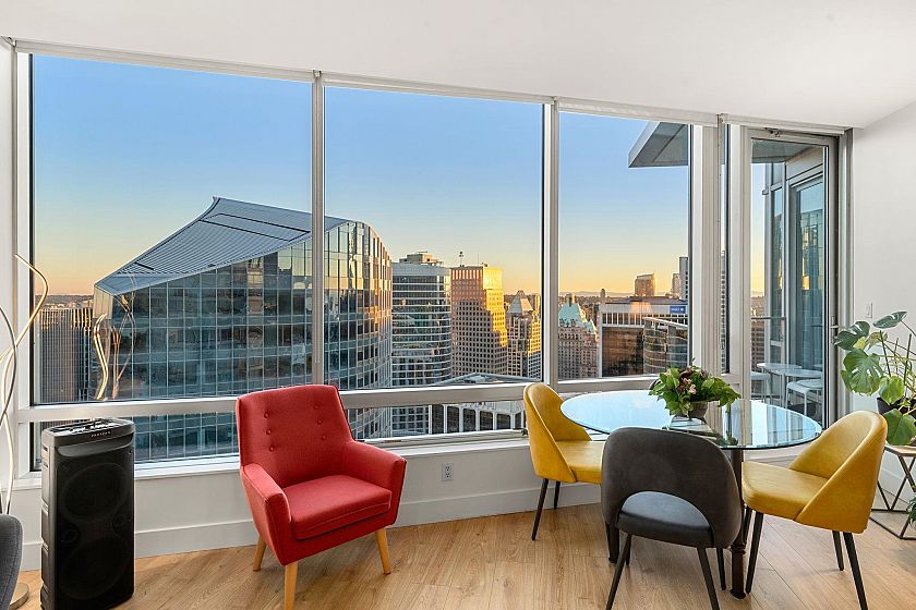 Located in the heart of Vancouver’s most coveted waterfront community, the iconic ROGERS TOWER (formerly Shaw Tower) sets the standard for luxury urban living. Situated on the highest floor for a one-bedroom residence, this rare 40th-floor home spans 778 sq. ft. and features 1 bedroom, 1 bathroom, and a den. With 9-foot ceilings, air conditioning, and sweeping views of Vancouver’s skyline and sunsets, it offers refined comfort and sophistication. Enjoy world-class amenities including a gym, boardroom, theatre, and 24-hour concierge. Steps from the seawall, fine dining, and luxury boutiques, this home defines premier waterfront living.