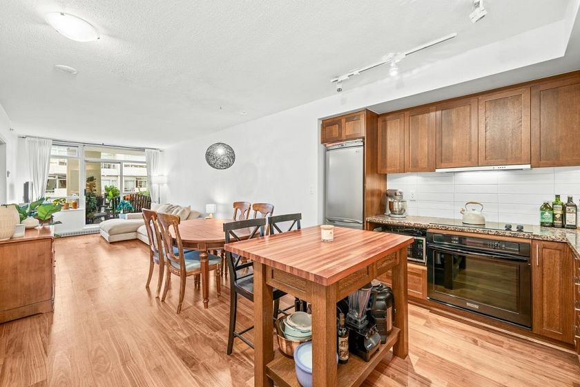 Welcome to The Vine in the heart of Kitsilano. This bright 1 bedroom, 1 bathroom and den almost 650 Sq. Ft. concrete home features an open layout with overheight ceilings, hardwood floors, and large windows that fill the space with natural light. The modern kitchen includes granite countertops, stainless steel appliances, and rich wood cabinetry. Step out to your private balcony with views of the North Shore Mountains and a vibrant cityscape. Enjoy premium amenities including a fitness centre, courtyard rooftop garden, family BBQ area, playground and one parking. Steps from cafes, shops, transit, IGA, London Drugs, and the future Broadway SkyTrain. Perfect for first-time buyers or investors seeking a stylish home in a prime location with exceptional walkability and everyday convenience.