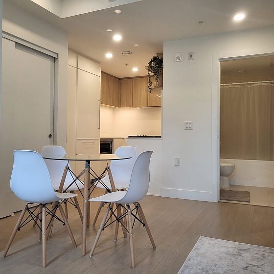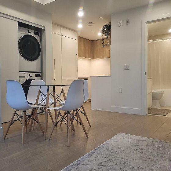 Welcome to Eila on W 49th! Located in the highly desirable Oakridge neighborhood, close to Langara Golf Course, the new Oakridge Mall, and 49th SkyTrain station. This bright 1 bed+ den features an open concept floor plan with large windows that fill the space with natural light. The kitchen boasts a premium integrated appliance package for modern convenience. Just right outside is a spacious 112sf of patio area and easy access to Oak Street. School catchment: Jamieson Elementary and Churchill Secondary. Includes 1 parking stall. Ideal home or investment! Open House: Oct 25, 12pm to 1:30pm