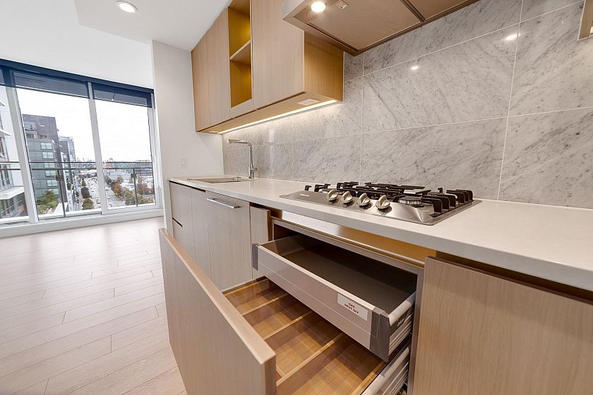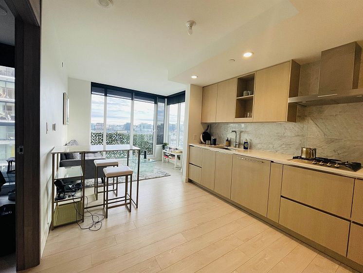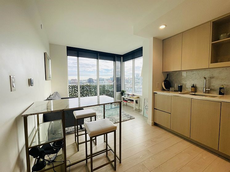 Stunning air-conditioned 535 sq.ft. 1-bed unit in Avenue One by concord pacific! This luxurious SE corner unit features high-quality finishings incl. craftsmanship details, floor-to-ceiling windows, gourmet kitchen w/ gas stove, chimney fan, miele S/S 24" appliances, wall oven, Panasonic microwave, designer cabinetry, & quartz countertops. spacious bedroom opens to Juliet balcony; insuite Miele washer & dryer.Unit includes private storage on the same floor w/ exclusive access. Enjoy top-notch amenities: 24-hr concierge, gym, party room, bbq, dog wash, in-house touchless car wash, off-leash dog area & more. Prime location: steps to waterfront, Skytrain,village plaza,parks,shopping,dining & entertainment.Easy access to Downtown Granville Island. Excellent tenant, Easy to show!