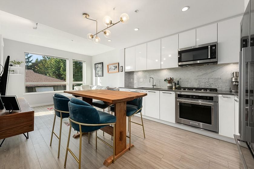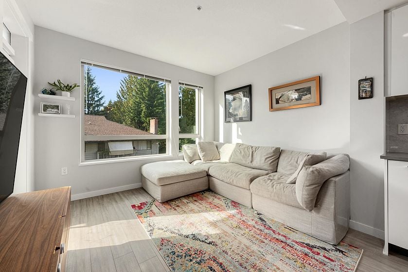 "Taluswood" by Polygon, perfectly positioned in the heart of Lynn Valley! Large 624 sqft One bed/1bath + Den. This bright and spacious unit has a fabulous floorplan and features open concept layout, 9' ceilings, spa-like shower with rain head, rich laminate flooring with in floor heating and plush nylon carpeting in bedrooms. The gourmet kitchen boasts quartz countertops, marble backsplash and sleek stainless steel appliances by Kitchen Aid and Fisher & Paykel. The building is equipped with an exercise centre, dog washing station, bike storage and is conveniently located next to Lynn Valley Village.
