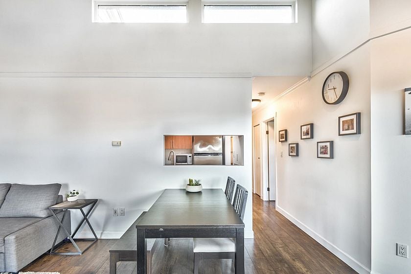Incredible value at The Encore—a bright and spacious penthouse in the heart of Lower Lonsdale. Sun-filled and south-facing, this home boasts 12-ft vaulted ceilings, a skylight, and large windows framing panoramic ocean, city, and sunset views. The open-concept layout flows to an oversized balcony ideal for BBQs or relaxing. Enjoy a gourmet kitchen with granite countertops, 1 secured parking stall, and a storage locker. The building was fully updated & rain-screened in 2007, and remains extremely well maintained. Recent updates include new roof, skylights, upgraded elevator, garage door, fence, flooring and more. Pet & rental friendly, with great neighbours and a proactive strata. All just steps to the SeaBus, restaurants, shops, and the waterfront—the best of Lower Lonsdale living!