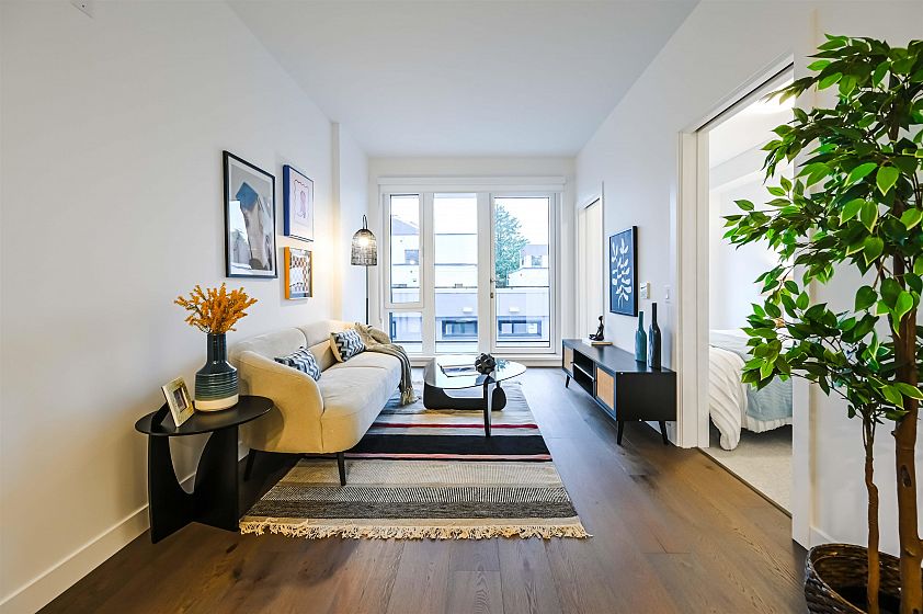 This brand-new 1 bedroom & 1 Den home faces a quiet inner street. It features modern cabinetry, hardwood flooring, quartz countertops, high ceilings, and central air conditioning. Den is ideal as a home office. Included 1 parking stall and 1 bike storage. Befitting its established location on the west side, Park Langara is a timeless design constructed in concrete, clad in brick with air-conditioning. Surrounding neighborhood offers everything you might need within walking distance including Langara Golf Course, Oakridge Centre, YMCA, Cambie Park & Tisdall Park. Short walk to Langara Skytrain Station. Within walking distance to top-ranked schools, Dr. Annie B. Jamieson Elementary and Sir Winston Churchill Secondary (IB program). Open House on Sat Feb 28, @2-4pm