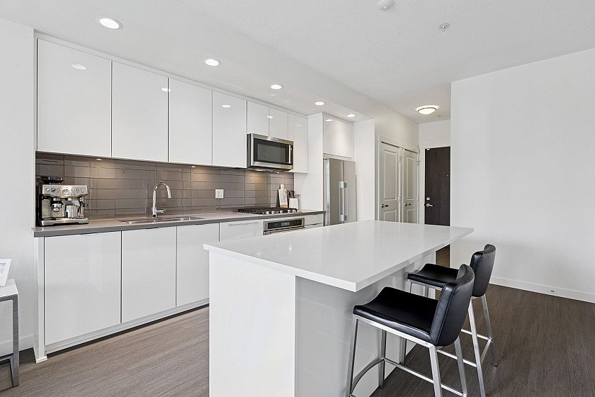 Step into contemporary elegance in this exquisitely crafted 1 bedroom & 1 bathroom penthouse unit at West Quay in the heart of Lower Lonsdale. The open concept living/dining area merges seamlessly with your chef inspired kitchen which features stainless steel appliances, gas range, quartz countertops, and a spacious island. Your primary bedroom is spacious with a large walk in closet and the spa-inspired bathroom offers a place to unwind, reset, and let the city fade away. The large balcony showcases sweeping water and city skyline views which is the perfect place to spend your summer days. Just steps to the Quay, SeaBus, waterfront strolls, cafes, restaurants, markets, grocery stores and more. Includes secure parking + storage. Pets & rentals welcome.