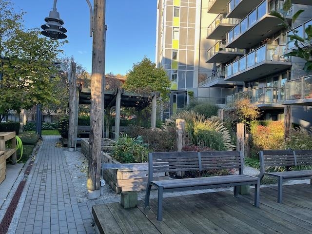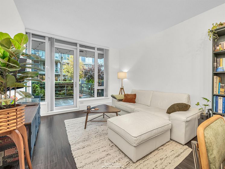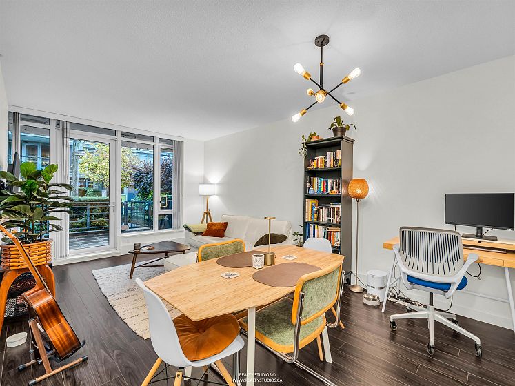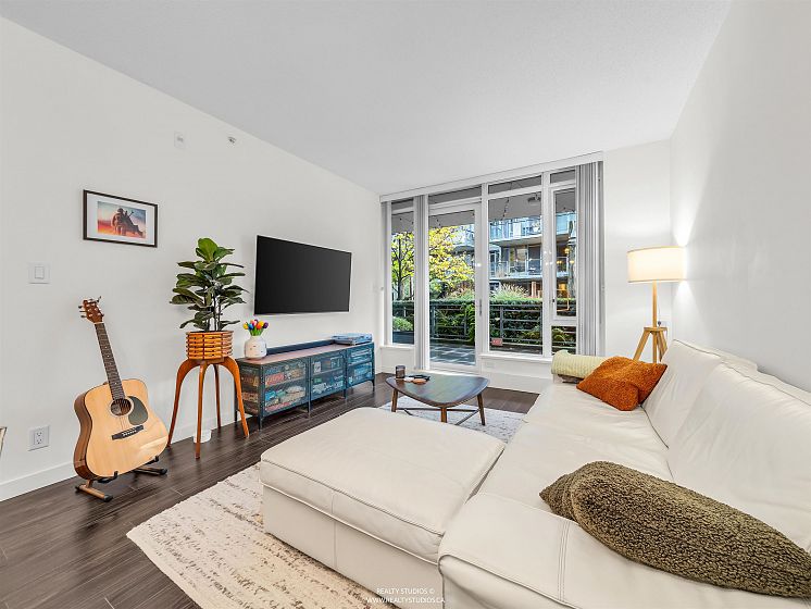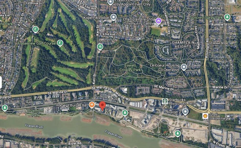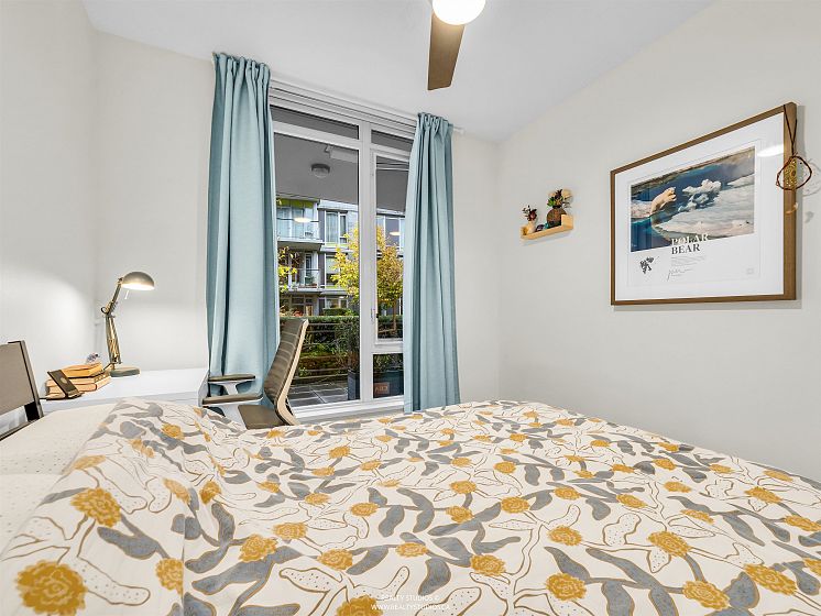 Prime River District 1 BEDROOM + DEN (8X4) GROUND FLOOR concrete building by POLYGON with its own safe private covered WALK OUT PATIO (282sq ) for pets or young children. West Coast modern architecture featuring brick and concrete facades with a spacious, 9' ceiling and an open floor plan. Laminate floors & Stainless steel appliances Up-to-date & fully equipped fitness room and huge party room. 1 parking space with a lot of visitor parking. Just mins driving to Metrotown, Richmond and Marine gateway. Walking distance to the Fraser River trails, parks, Save On Foods, Shoppers Drug Mart, and Romer's Burger Bar. Clean and well-maintained unit in move-in condition. A MUST SEE AND QUICK POSSESSION OK. OPEN HOUSE Sunday 2-4p 14 DEC.