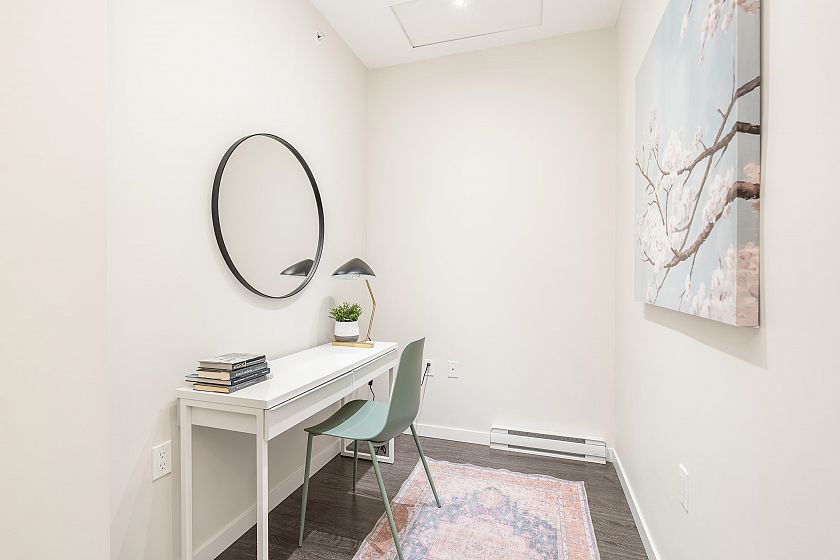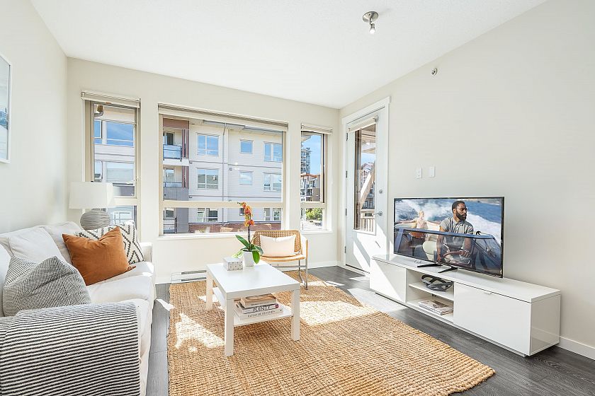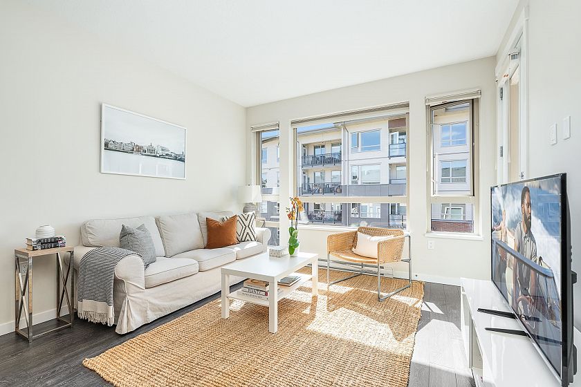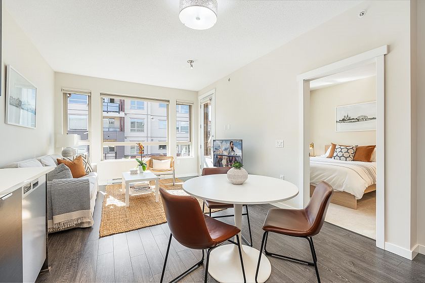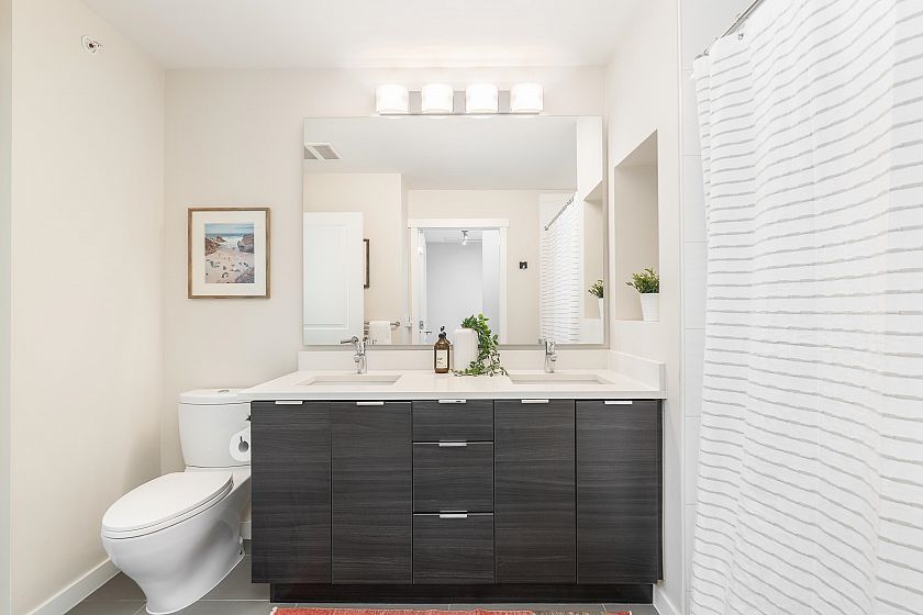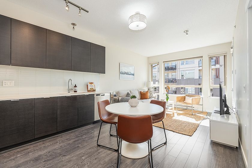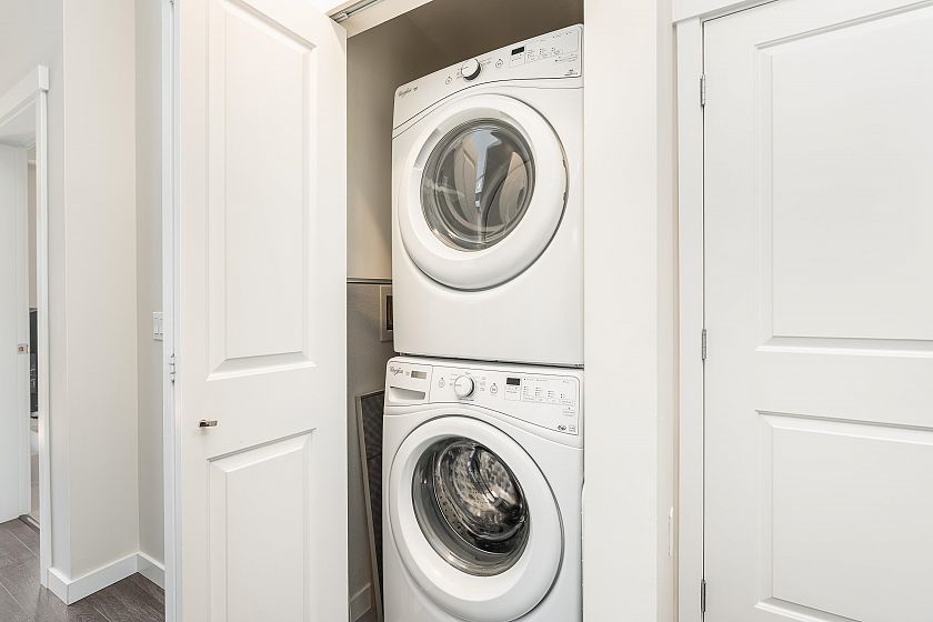 TOP FLOOR one-bedroom + DEN on the quiet, west-facing side of CANYON SPRINGS by POLYGON in the heart of Lynn Valley. This modern home offers a functional layout with 9-ft ceilings and a spacious kitchen featuring quartz countertops, upgraded range, Fisher Paykel fridge, and sleek wood cabinetry. Upgrades include custom blinds, closet organizers, corner pull-out in the kitchen, and built-in drawers. Enjoy the convenience of a gym, dog wash, and bike room. The home comes with 1 parking and 1 locker. Unbeatable location just steps to Lynn Valley Town Centre with great restaurants, boutique shopping, parks, top-rated schools, trails, and transit. Pets and rentals allowed.