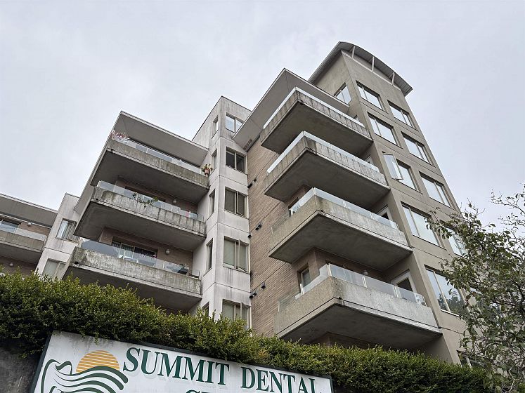 WOW!! Roll up your sleeves and bring your renovator hat. Great opportunity to build sweat equity. Spacious layout for this North East corner unit in a prime Central Lonsdale location with it's vibrant charm yet surrounded by shops, cafes, everyday essentials and a great walkable neighbourhood. The layout offers a large kitchen with pass through to the dining area, formal living room with gas fireplace and door to a large balcony. The bedroom is also spacious. The building has commercial shops/businesses on the lower level. Rear lane access to underground parking.