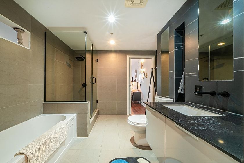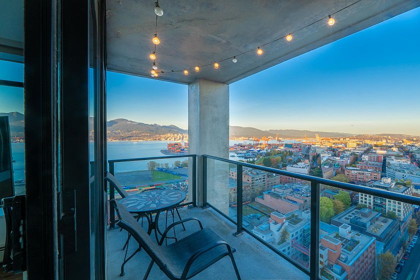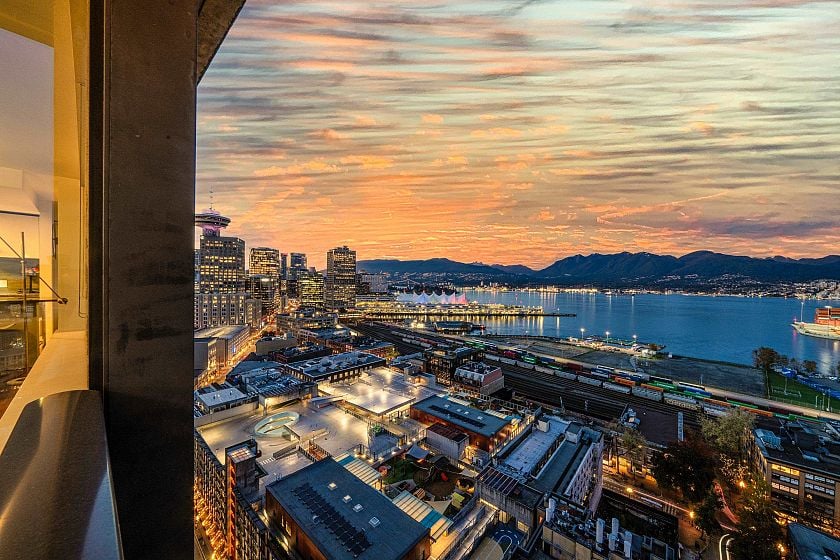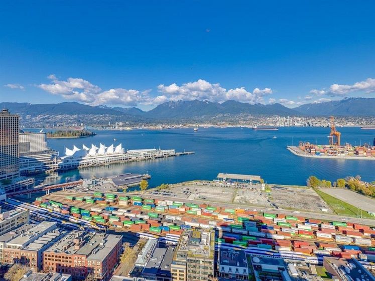 WATER VIEW!Rare & Highly Sought-After 01 Unit at Woodwards W32! This unique north-facing corner 1-bedroom is the only one of its kind in the building—and the largest at 800 sq. ft. Enjoy unobstructed waterfront views of the harbor and Burrard Inlet from the spacious living room, bedroom, and kitchen, even while lying in bed. Also admire North Shore mountain and Gastown cityscape views. Stylish and efficient layout featuring polished concrete ceilings, hardwood floors, and a sleek Eggersman kitchen. Access the luxurious Club W amenities—gym, lounge, and rooftop hot tub with panoramic views. Steps to Nesters Market, London Drugs, cafés, restaurants, and transit. Experience urban waterfront living at its finest in the iconic Woodwards Tower.Open House 2 -4 pm Sat & Sun Nov 1st & 2nd.MUST SEE!