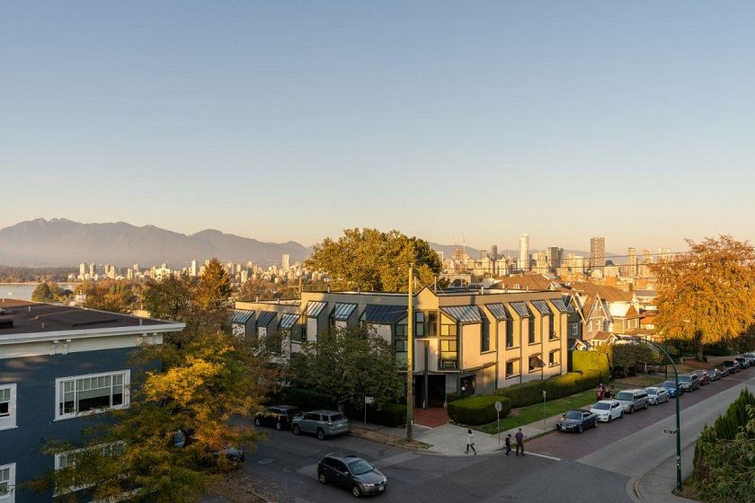 Stunning downtown, mountain, and English Bay views from this spacious, fully renovated one-bedroom penthouse-level home, perched high on the corner of West 3rd and Yew. This light-filled corner unit features soaring 9'9" ceilings, a dramatic living room skylight, and floor-to-ceiling windows. Ideally located for the Kits lifestyle, just steps to vibrant West 4th Avenue with its shops and restaurants, plus Safeway and Whole Foods less than a block away. Nestled on a quiet residential street and only four short blocks to coveted Kits Beach. Highlights include California Closets, heated bathroom floors, smooth ceilings, and a cozy gas fireplace. Pet friendly and one secure underground parking stall is included.