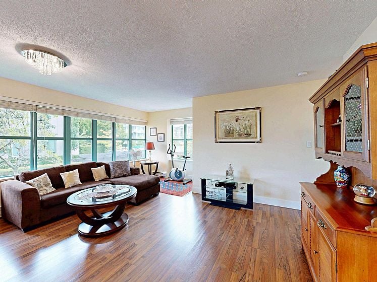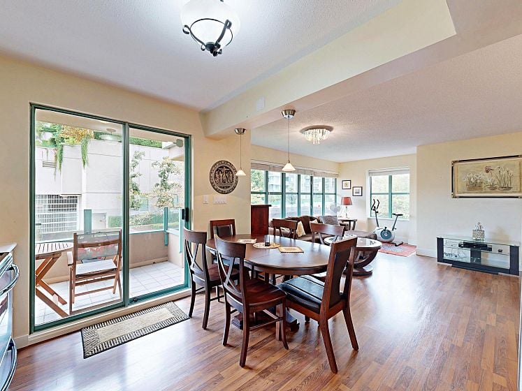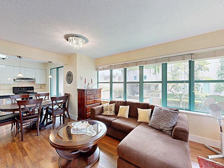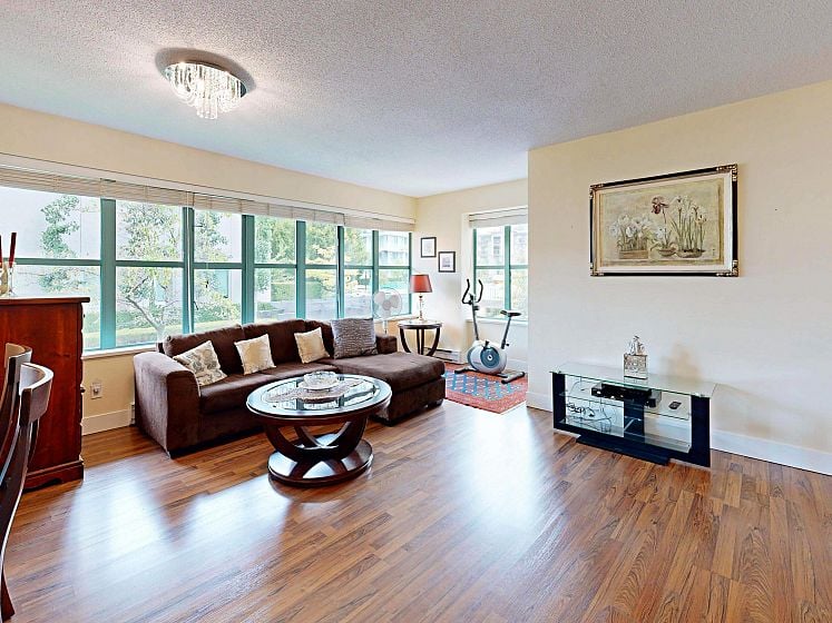 One of the best ONE BEDROOMS in CENTRAL LONSDALE. Rarely available large one-bedroom CORNER UNIT in Central Lonsdale in the sought-after building THE SOVEREIGN. This bright and spacious home features a generous kitchen with direct access to the balcony, large windows that flood the space with natural light, and a well-sized bedroom with a walk-in closet. The updated bathroom includes a modern stand-up shower with a glass door. Added conveniences include in-suite laundry, a storage locker, and secure underground parking. Located just steps from the shops, restaurants, and amenities of vibrant Central Lonsdale yet tucked away in a quiet, private setting.