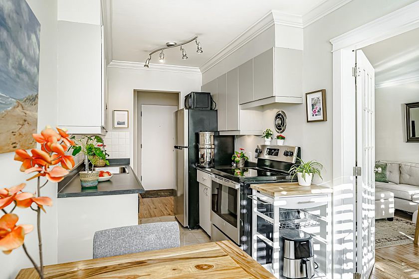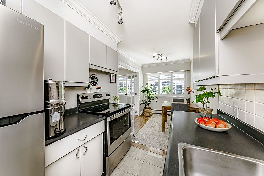 Prime Kits Beach Living! Steps from Kits Beach, this beautifully maintained 1-bedroom home on prestigious Point Grey Road is nestled in an immaculate, well-managed building. The suite offers a peaceful ambiance, a well-designed layout, and a spacious bedroom. Upgrades include French doors, new flooring, new walls, fresh paint , high end shutter blinds and smart lighting throughout. Take in stunning city, mountain, and ocean views from the rooftop deck. Just moments from Kits Pool, transit, and vibrant shopping. Maintenance fee includes high-speed internet, taxes, heat, and hot water. A rare chance to own in one of Vancouver’s most sought-after building, don’t miss out! Please allow 24 hours notice for showings.