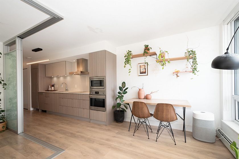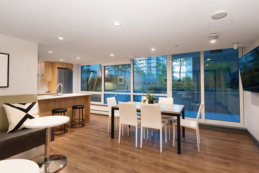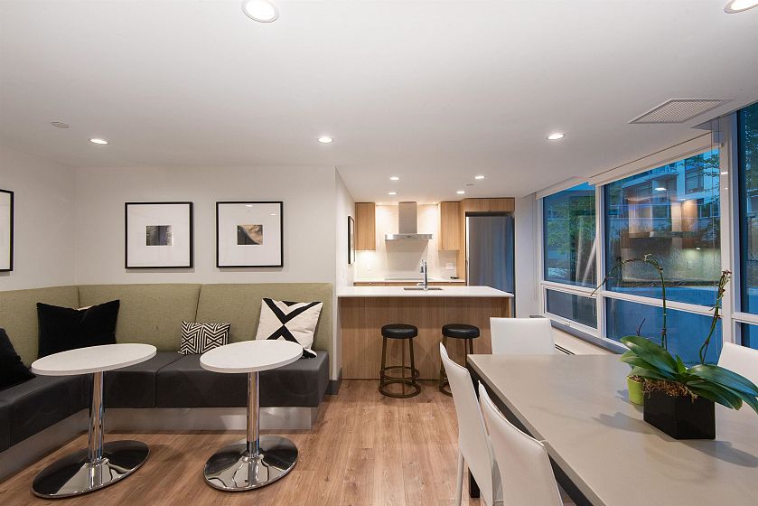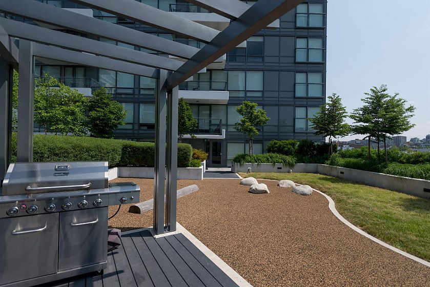 Imagine sipping your morning coffee, or evening glass of wine with friends and family on your communal rooftop view garden deck! Unique 1 bdroom w/ insuite laundry in super prime Olympic Village location. Bright sunny South facing living room, leading to beautifully well laid out gourmet kitchen with high-gloss cabinets, quartz counters, s/s appliances has been kept in excellent condition, and it exudes the open concept with no wasted space! Custom California Closets add easy storage options. Well run complex includes Concierge, gym, clubhouse, dog & car wash, visitor pkg, bike lkr, MoDo Car Share & Includes a Locker. Pets & Rentals okay. Short walk to the Seawall, community center, casual coffee spots, craft breweries, dining, parks, shopping. OPEN HOUSE this Sunday Nov 9th from 2-4pm.