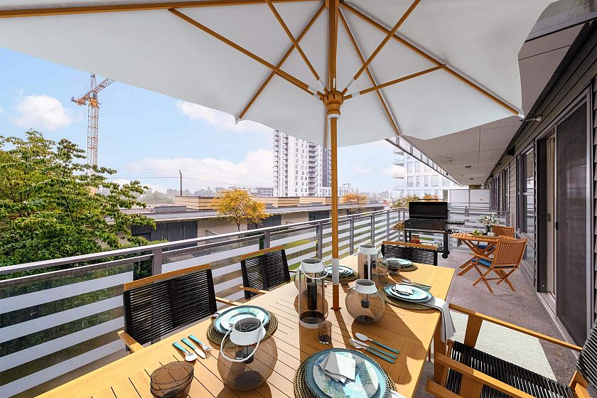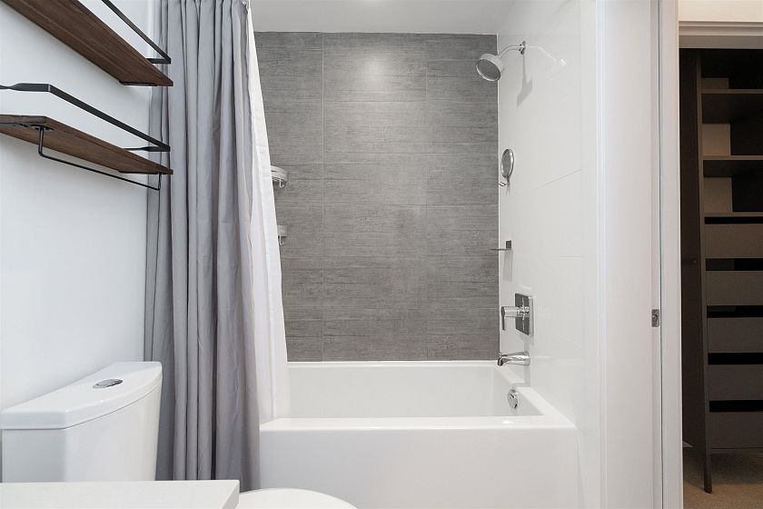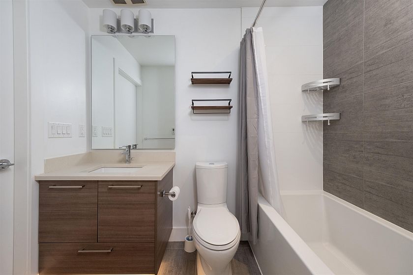 Rarely available south facing 1 Bed 1 Bath & Den in River District's Three Town Centre with XL 206sqft sunny balcony! Fresh paint throughout, this home is move in ready. Gas Range, built -in Oven & microwave plus brand new Hot Water dispenser. SS appliances include double-door fridge with cold water dispenser. Radiant heating to make your winter months extra comfy. Amenities include 14k sqft amenity center, Club Central: Hot tub, Steam room, Sauna, pool, gym, party room, kids play room, 2 squash courts, and basket ball court. Live the River District lifestyle, this community only adds to your active lifestyle.