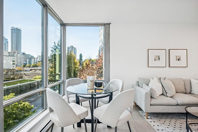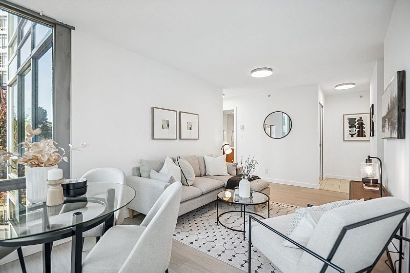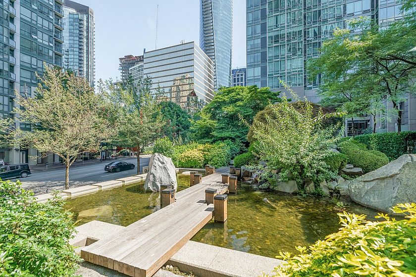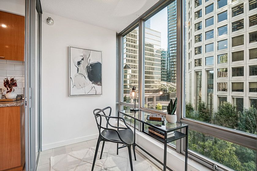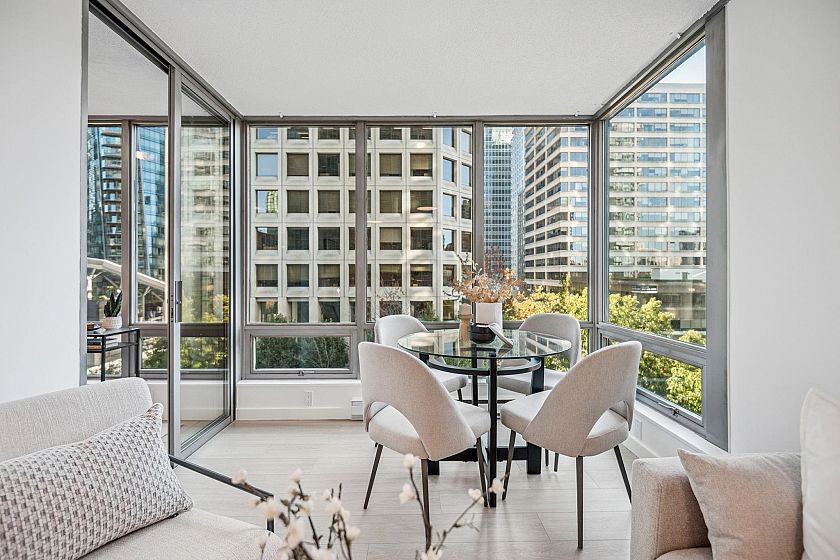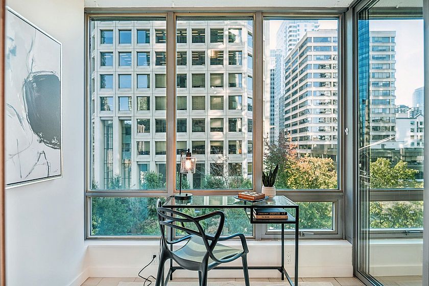 The Residences on Georgia - a statement of modern elegance in the heart of Downtown. This RENO'ed luxurious CORNER 1 BED+DEN (easily a 2 Bedrm)+SOLARIUM offers a generous flexible layout. The gourmet kitchen w/full size SS appls, granite counters & sleek cabinetry will inspire your inner chef. Set up a breakfast nook in the solarium & have the den double as a home office or guest rm. The spa inspired bath w/marble counter is a lovely way to end the day & in-suite laundry w/storage will keep things tidy. Nicely REFRESHED w/BRAND NEW flooring, roller blinds & paint. Residents enjoy a gym, meeting rm, concierge & inc 1 parking & locker. PRIME D/T location, steps to financial district, world class shopping on Alberni & Robson, Coal Harbour dining, Seawall & Stanley Park.