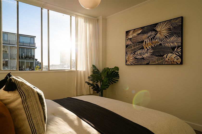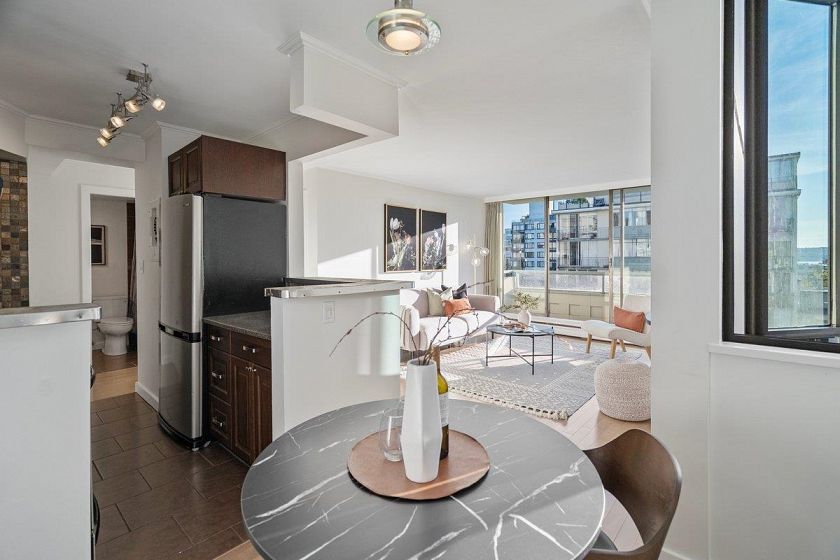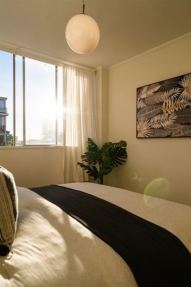 Welcome to life west of Denman, where the city meets the sea and every day feels like a getaway. This 1-bed home puts you at the gateway of Stanley Park and Lost Lagoon, Coal Harbour’s seawall, and English Bay’s sunsets, with Denman Street’s cafes and restaurants just steps from your door. Inside, this 550 sqft. suite blends comfort and style with engineered hardwood flooring, tile, and an updated kitchen and bath. The SW exposure fills the space with natural light, creating a warm and inviting atmosphere throughout the day. Set in a full-concrete building, this home offers peace of mind and lasting quality in one of Van’s most beloved neighborhoods. Whether it’s morning walks through the park, evenings on the seawall, or dining just around the corner, this is West End living at it's best.