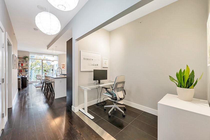 DOLCE – Downtown Living at Its Finest Discover the best of downtown Vancouver right at your doorstep. Live just steps from Rainbow Park, the International Film Centre, trendy restaurants, lounges, cafés, and the Vancouver Public Library. This elegant home features a spacious chef’s kitchen with an oversized island, abundant cabinetry, and a cozy dining area highlighted by a warm gas fireplace. High ceilings and two Juliet balconies create an open, airy atmosphere that feels both grand and inviting. The versatile den offers the perfect space for a home office, nursery, or guest room. A luxurious bathroom with a double vanity, separate shower, and soaker tub completes this exceptional residence. Built by Solterra, Don’t miss this rare opportunity! Open House: November 8th & 9 2:00-4:00pm