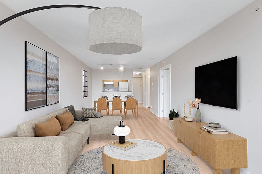 Welcome to Urba, a modern and stylish concrete high-rise built by Bosa. This spacious, bright 1-bedroom, 1-bath home showcases a carefully crafted interior with a functional layout including new flooring and fresh paint, creating a truly move-in ready space. Enjoy the morning sun and stunning SE facing views from your private balcony. Includes in-suite laundry, 1 parking w/EV charger, and 1 storage locker. The building offers fantastic amenities such as a gym and social lounge. Pets and rentals allowed, ideal for first-time buyers or investors. Located in a vibrant, walkable community with easy access to the SkyTrain, parks, shops, and Highway 1 access. This immaculate home blends comfort, style, and unbeatable urban living. Don’t miss out!