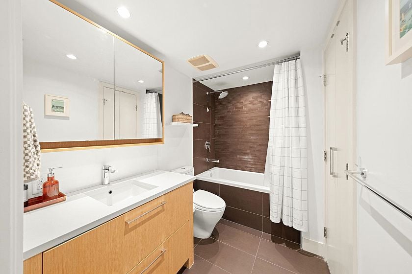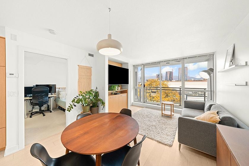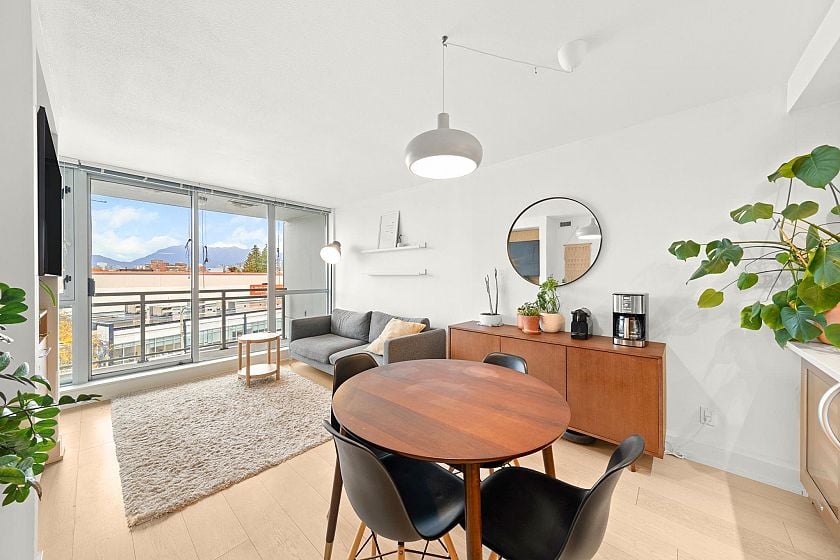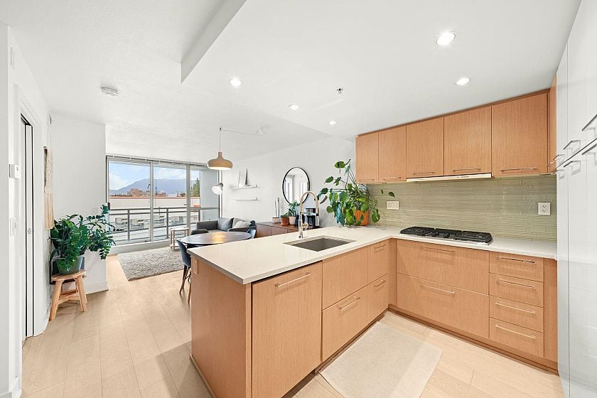 Welcome to Mantra, built by Cressey! This 673 sq ft. Sub-Penthouse 1 bed+1 bath boasts exceptional features, with a special highlight on its exquisite millwork and expansive kitchen cabinetry. The award-winning "Cressey Kitchen" is a standout, showcasing a gas cooktop, built-in microwave and oven, sleek quartz countertops, a wine cooler, and abundant cabinetry for unmatched storage and style. Custom millwork throughout elevates the home’s sophistication, adding elegance to every space. Enjoy floor-to-ceiling windows with breathtaking mountain and city views from the spacious living room, a functional den, a solarium, and a BBQ-ready patio. This concrete-constructed home also includes geothermal heating and cooling in the condo fees! Complete with 1 parking and 1 locker.