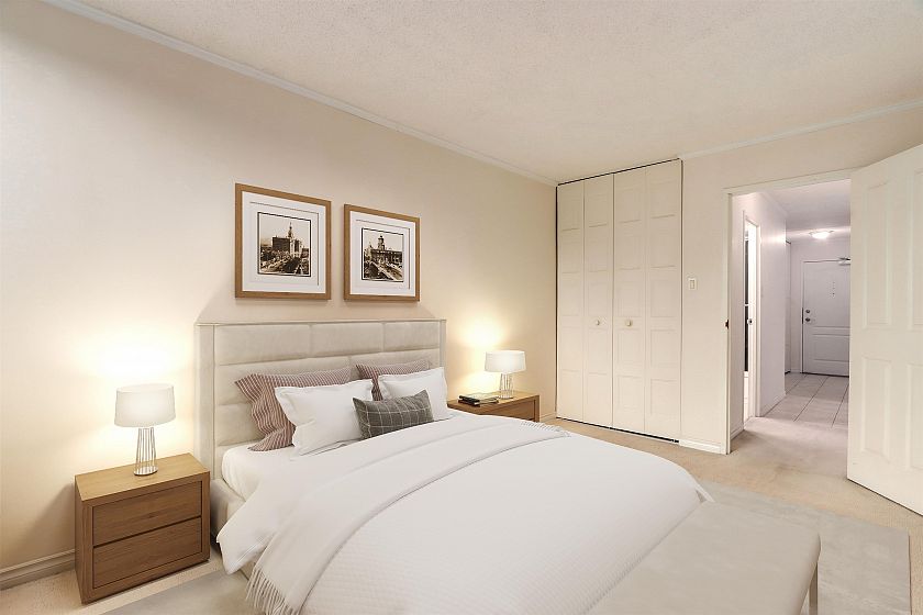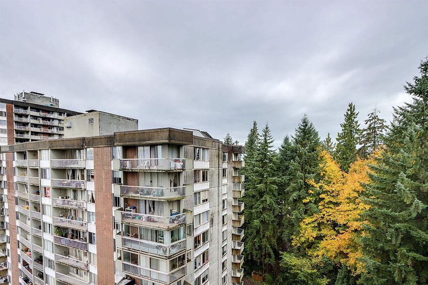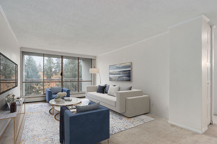 Spacious west facing one bedroom in Woodcroft's Lillooet building. Over 700 square feet, private outlook with ample ambient light & afternoon sun. Mostly original condition but very livable as is. Fast possession available for rental or residence. Generous room sizes will fit your larger furnishings. Bonus in-suite storage room for greater security plus storage locker down. These suites rarely come to market & are highly sought after. Building has many upgrades including plumbing replacement, elevator rebuilding, roof replacement, common area upgrades. 24/7 manned security & property management onsite to enhance your lifestyle. Park Royal shopping is a 10 minute walk along the Capilano River. Lions Gate Village is a short walk over the Woodcroft bridge. Interior photos digitally staged.