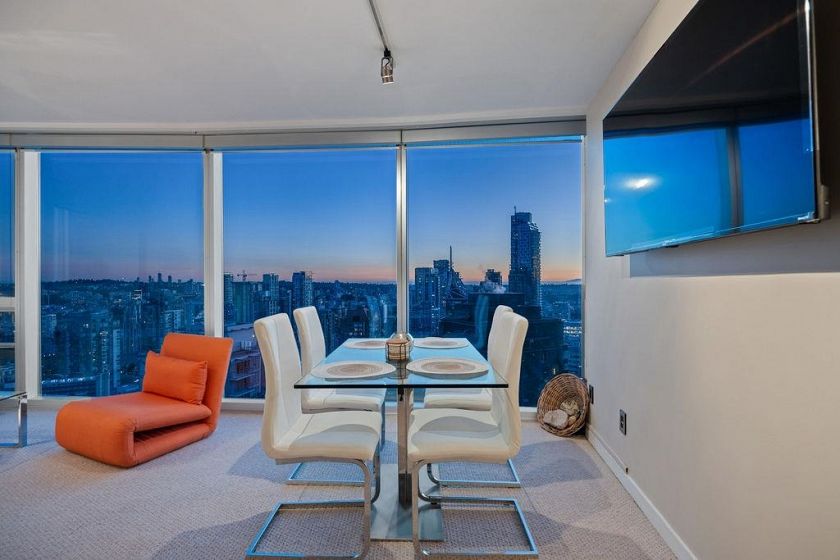 Experience panoramic views of Vancouver's skyline and ocean from this air-conditioned 32nd-floor skyhome spanning 794 sqft with 1.5 bathrooms. Floor-to-ceiling windows flood the space with natural light and frame the breathtaking scenery, while the layout ensures comfort and functionality. The expansive primary bedroom is a private sanctuary featuring mesmerizing city views, a cozy gas fireplace, and a luxurious ensuite with a soaking tub and separate shower. Residents enjoy exclusive access to premium amenities, including a fitness centre, indoor pool, housekeeping, room service, and 24-hour concierge. Step outside and find Vancouver's finest dining, shopping, and entertainment just moments from the lobby. This exceptional home is complete with 2 EV-ready parking stalls OPEN Sat 17th 2-4