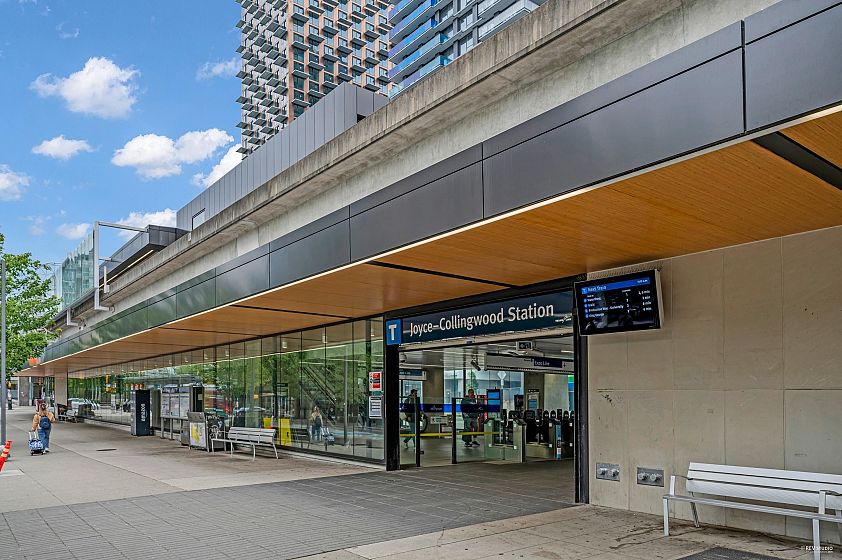 Located on the quiet courtyard side of a concrete high-rise, this bright and peaceful apartment offers stunning panoramic views of the North Shore Mountains and Downtown Vancouver. Perfect for investors or first-time buyers, it features a smart, functional layout with laminated flooring and a private balcony. Enjoy unbeatable convenience—just steps to Joyce SkyTrain, major bus routes, shops, restaurants, and parks—while being only two stops from Metrotown and 20 minutes to Downtown. Comes with one parking and one storage locker.