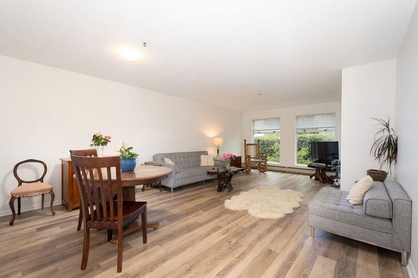 This is a wonderful opportunity to live in a 55+ building in heart of Dundarave at a very affordable price. The home is on the main level of the building, but the balcony is not ground level offering security and piece of mind. This well cared for home is located across the street from the West Vanc. Rec center, the seniors center, and only a short stroll to the West Van seawall. It is a large 1 bedroom that accommodates house sized furniture boasting a big eat in kitchen and king sized primary bedroom. The private deck faces south but has mature vegetation for privacy from neighbours and so quiet you can hear a pin drop. Maintenance fees include heating and hot water. There is a large storage room locker and 1 well located parking stall included. Come see you wont be disappointed.