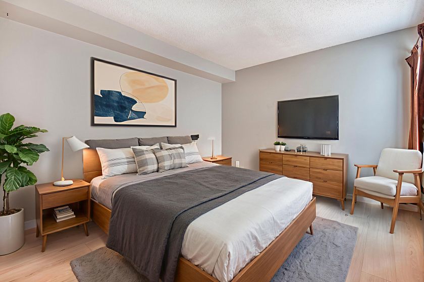 Welcome to Fairview Village. Located on West 8th Avenue, this spacious one-bedroom unit offers over 800sqft of living space with freshly painted walls, newer floors, and ample storage. The home features both south and north-facing patios, providing a combined outdoor space of 320sqft. Purchase with confidence in a Full Rain-screened complex, complete with a new roof and proactive strata. Enjoy the convenience of living steps away from Broadway amenities, Granville Street shopping, major transit lines, the False Creek Seawall, Granville Island, and the upcoming Broadway Line. One secure parking stall included, pets and rentals permitted. Come visit this spacious apartment in the heart of Fairview Slopes.
