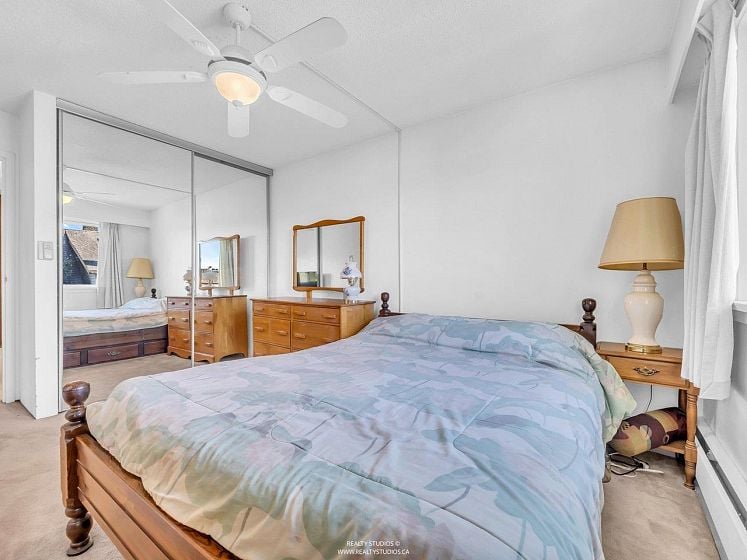 Top-floor 1-bedroom at Connaught Court, perfectly located up from Kits Beach and vibrant shops and cafes along West 4th! This bright home offers a spacious living area and bedroom, with treed outlook creating a peaceful, private feel. Ready for your design ideas, this is ideal for those looking to renovate and make it their own. Proactive strata with a caretaker, full rainscreen, updated wiring, pipes, and parkade waterproofing. Includes 1 parking and large storage locker. Enjoy the best of Kitsilano living—walk to the beach, parks, restaurants, and the upcoming Broadway SkyTrain! Open House Sat & Sun Nov 8th & 9th 2-4PM.