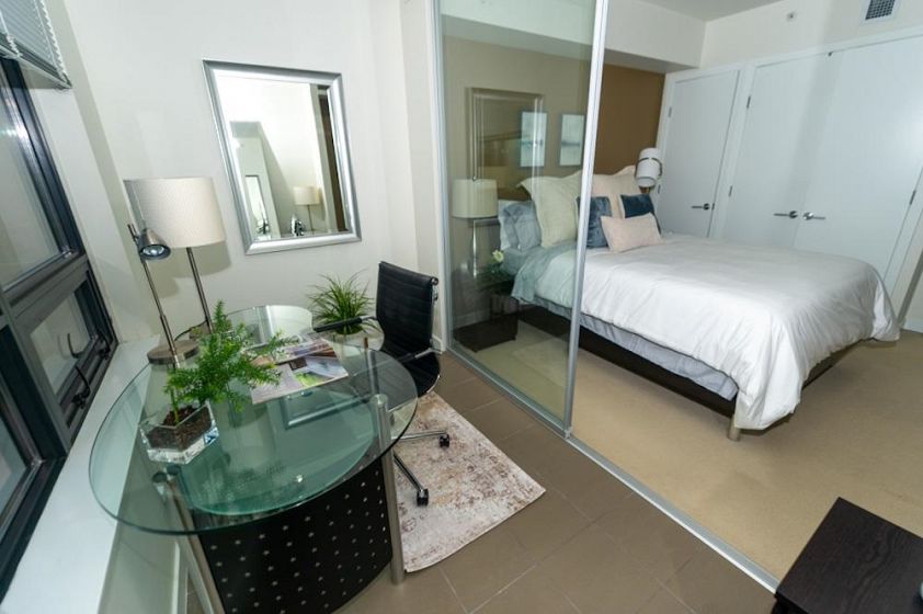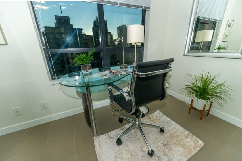 FURNISHED 1 bdrm + den, 1 bath, 685 sq ft A/C condo at L’Hermitage. Bright open layout w/ views over hotel gardens & city skyline. Kitchen features Diamastone counters, Eggersmann cabinetry, Bosch appls, Sub-Zero fridge, gas cooktop & island w/ bar seating. Wide plank floors throughout. Bdrm connects to glass-enclosed solarium, ideal office w/ city views. Bath offers separate tub & shower w/ tile surround. Step-out balcony for fresh air, in-suite laundry & large in-suite storage. Located at Richards & Robson, steps to SkyTrain, Pacific Centre, Robson shops, IGA, T&T, cafés, dining, Seawall & Yaletown. Amenities: gym, steam room, lounge & rooftop garden (pool for hotel guests only).Rental incl: Heat, hot water, gas, and electricity (capped at $50 a month), internet, and 1 parking. No Pets