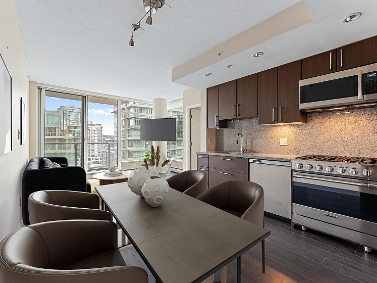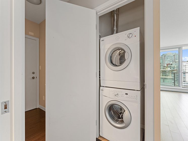 Wall Centre False Creek 1 Bedroom WATER and MOUNTAIN view! A very efficient layout w/large windows, S/S appliance package inc. 5 burner gas Viking stove. Enjoy the False Creek WATER and MOUNTAIN views from your living room and spacious balcony! This well run building has an excellent caretaker, well equipped gym, meeting rooms, lounge, guest suites and garden terrace with playground. Unbeatable location in the heart of Olympic Village - literally steps to everything: the seawall, JJ Bean, Craft, Urban Fare, restaurants, transit (both Canada Line/Expo Line skytrain, Aquabus), Hinge park, and so much more! Includes 1 parking and 1 storage locker. Viewings by appointment.
