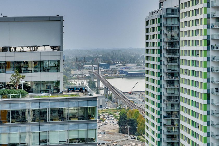 Mint condition home with amazing views at the Concord Pacific W1 in the prime Marine Gateway area! South-facing panoramic Fraser river & city views. This super quiet and extremely well-maintained home on the 30th floor comes with central AC and a functional 500 sq-ft 1 bedroom + 1 den lay-out. Modern kitchen with Miele appliances & quartz countertops, bathrooms with marble tiles and built-in vanity-cabinets. 1 EV parking & 1 bike locker are included. Amenities include 24-hr concierge, touchless car wash, gym, clubhouse, karaoke room, ping pong table, visitor parking area! Directly across from the Marine Gateway, T&T, Cineplex Cinemas, Shoppers Drugs, BC Liquor, Fitness World, TD/BMO/RBC/Scotia, WeWorks, Skytrain & Bus station. OPEN HOUSE: Dec. 7th Sun 2pm to 4pm