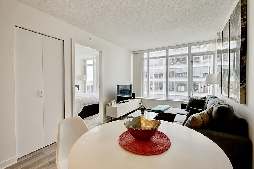 This beautiful one bedroom apartment with a living area is open concept, and is full of natural light, is in immaculate condition, recently updated with new flooring & paint, features a private exposure from the floor to ceiling windows. The kitchen comes complete with stainless steel appliances, granite counters and ample storage space. As part of the Hudson building, you will enjoy private access to Granville SkyTrain station and will be able to make use of the other amenities on offer, including a concierge, fitness centre. You could not ask for a more central location of shops, restaurants, bars and entertainment venues right on your doorstep. Call your Realtor!