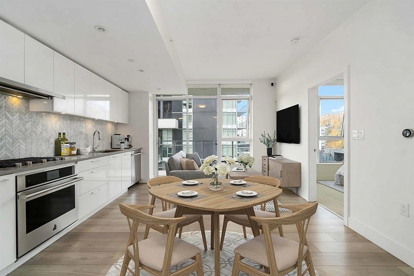 Welcome to Avalon 2 at River District. Step into this bright and stylish 1 Bedroom + Den home, designed for comfort and life-style. The open-concept w/ 9-ft ceilings and floor-to-ceiling windows, filling your space natural light and beautiful west-facing views. The Kitchen features premium stainless steel appliances, sleek cabinetry, and marble backsplash. Stay comfortable year-round with the high-efficiency heating / cooling system managed by NEST thermostat. Top-tier amenities include a gym, SkyLounge, party room, study room, and guest suites. Save-On-Foods, Shoppers Drug Mart, TD Bank, local shops, cafés, and dining options — All just steps from your door. 1 parking included. Don’t miss this opportunity. Open House SAT Nov 15th 2-4pm