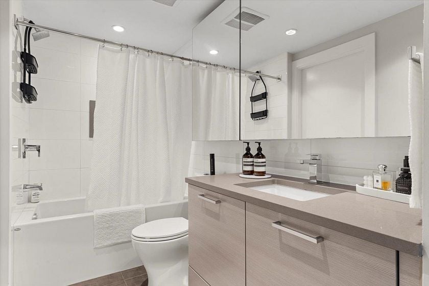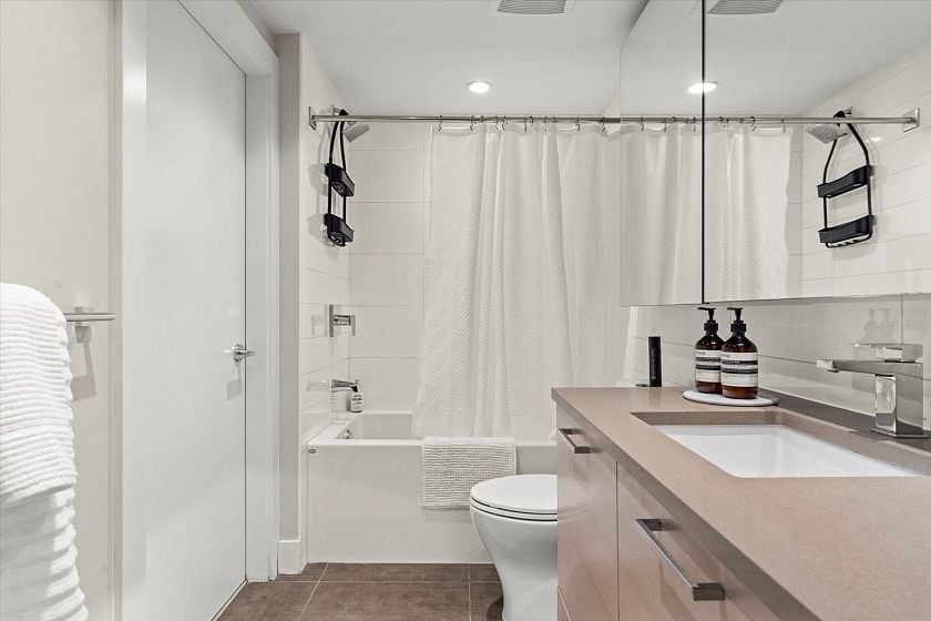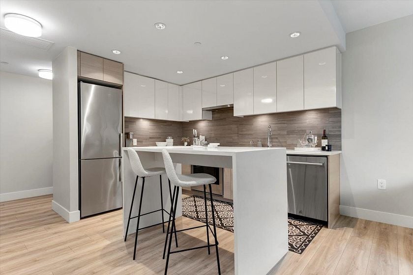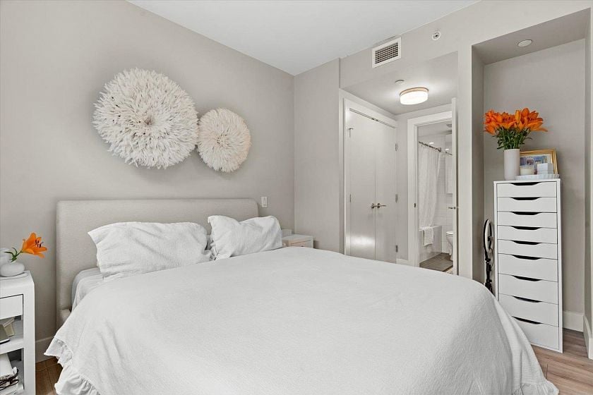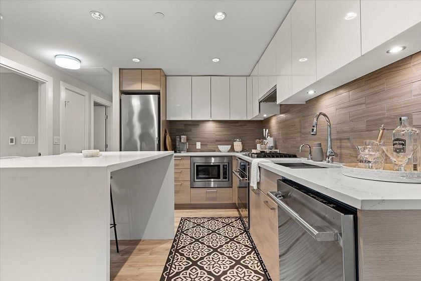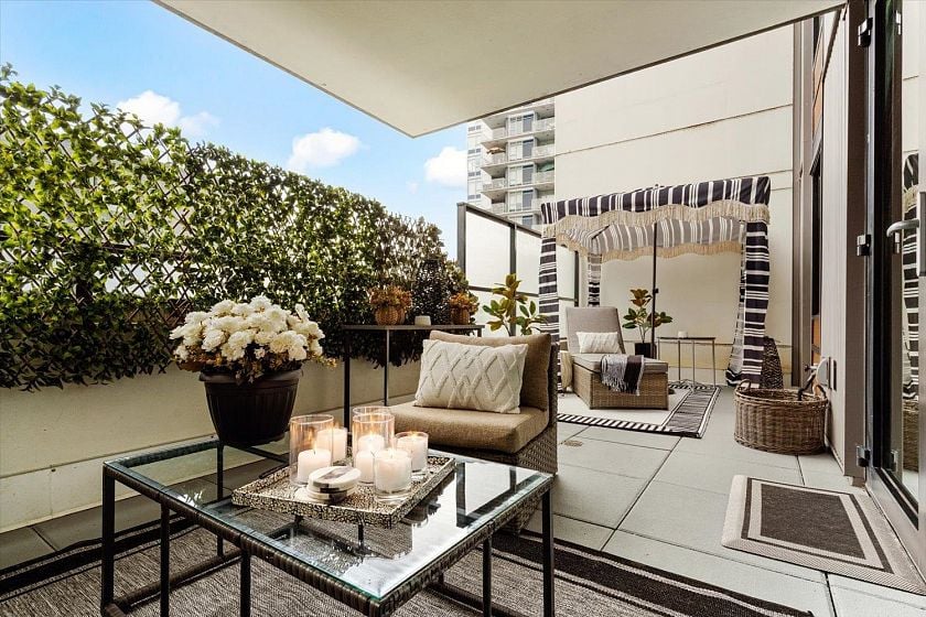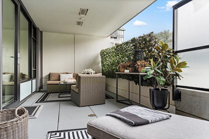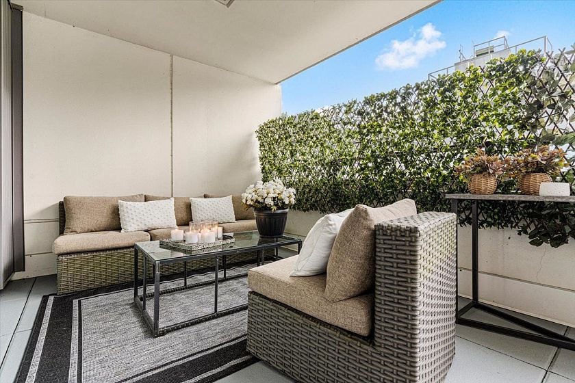 Welcome to Quartet in vibrant River District! This spacious 647 sq ft 1 bed + den home boasts a RARE 212 sq ft private patio making it highly desirable for tenants and owners alike. Premium JennAir appliances, gas cooktop, quartz counters, in-suite laundry, and a versatile den add value and function. Encore Tower residents enjoy access to world-class amenities: indoor pool, hot tub, squash & basketball courts, large fitness centre, lounge, and more. Steps from shops, dining and transit, this home offers strong investment potential and lifestyle convenience in one package. Parking and storage locker included!