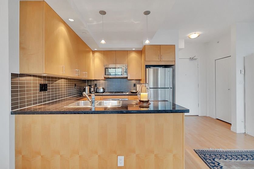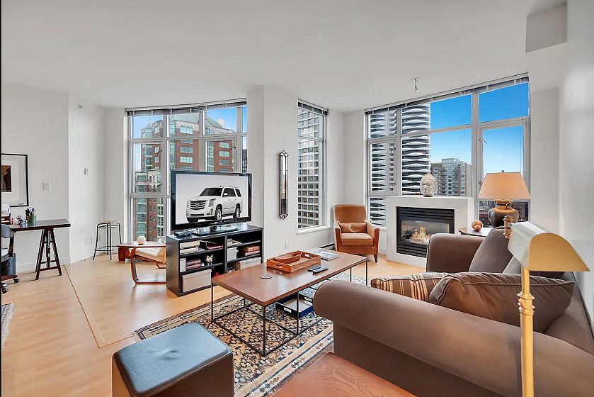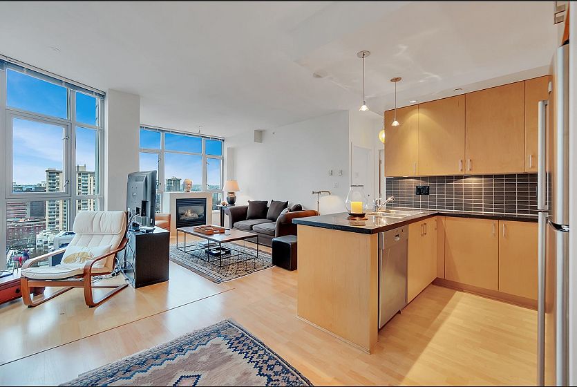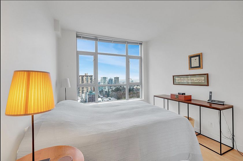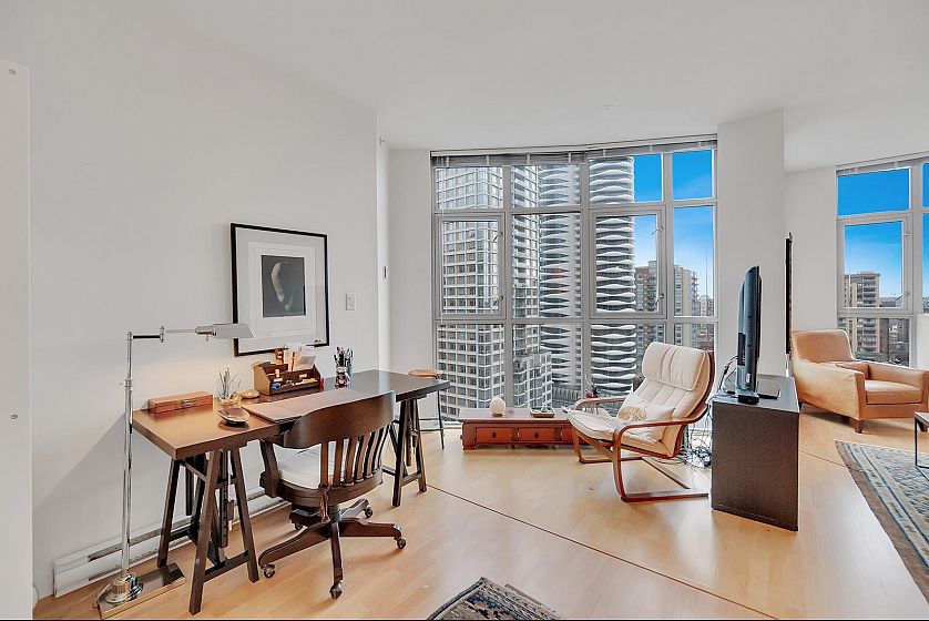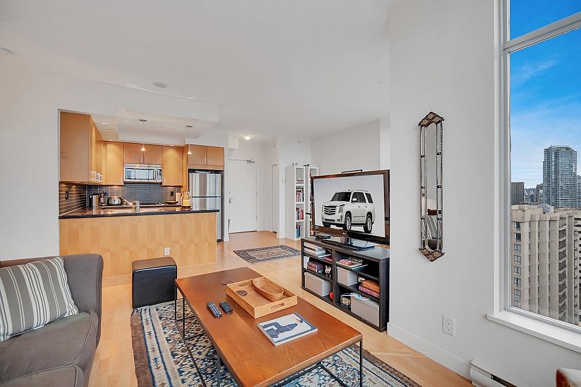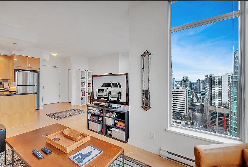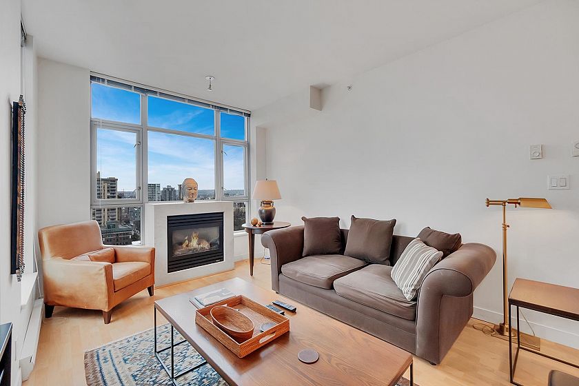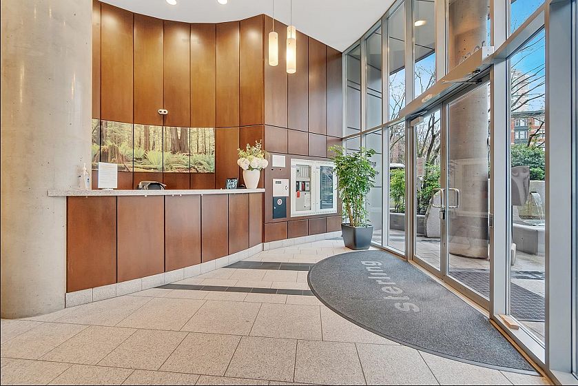 SUB-PENTHOUSE at The STERLING! VALUE, CONVENIENCE, LOCATION! Imagine waking up to breathtaking views DOWNTOWN'S skyline to English Bay. This bright, SPACIOUS southeast-facing 1-bedroom + den corner suite with OPEN PLAN boasts HIGH CEILING and a gourmet kitchen-perfect for entertaining. Just steps from Robson's vibrant shops, Scotia Theatres, and the IGA, you'll have everything at your fingertips. Enjoy luxurious AMENITIES like a GYM, HOT TUB, LARGE PARTY ROOM and concierge, plus the convenience of two parking stalls. Pets and rentals are welcome. Your ultimate VANCOUVER getaway awaits! Unbeatable value & PRICED SHARPLY $94,000 BELOW ASSESSMENT! BONUS TWO PARKING! THIS IS DOWNTOWN'S BEST VALUE!