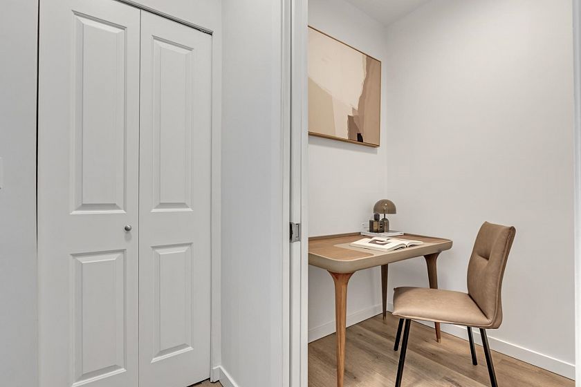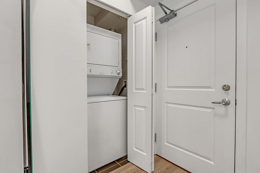 This bright and spacious 1 bedroom plus den home offers 635 sq. ft. of functional living space with an open layout designed for modern comfort. The den is perfect for a home office, and the large in-suite storage adds everyday convenience. Enjoy a modern kitchen with stainless steel appliances, in-suite laundry, and one secured parking stall. Fantastic location, just steps from Nanaimo SkyTrain Station, schools, parks, shopping, restaurants, and everyday.