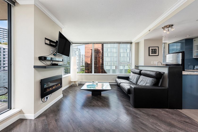 Welcome to Coopers Lookout, a standout residence in Vancouver's coveted neighbourhood. This northwest-facing 1Bed and Den corner unit offers a bright, open layout with expansive windows and refined Euro-style finishes, including granite countertops, stainless steel appliances, laminate flooring throughout. Whether you're a young professional seeking a vibrant urban lifestyle, an investor looking for a high-demand low maintenance property, this unit delivers. Residents enjoy exclusive access to Esprit City Club's resort-style amenities: a fully equipped gym, yoga and Pilates studio, two ten-pin bowling lanes, a Hollywood-style theatre, and a gourmet kitchen ideal for entertaining. Just steps from the seawall, the location invites an active outdoor lifestyle. This is city living at its best.