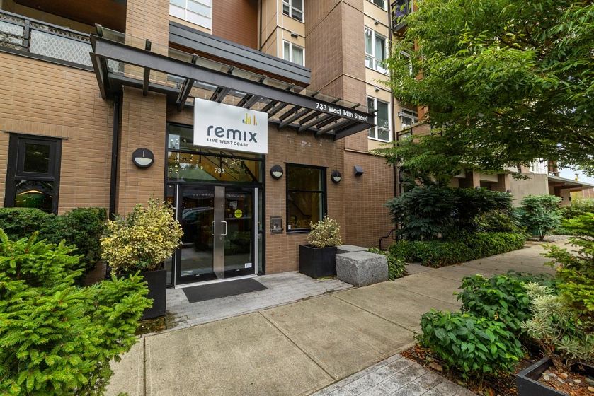 Stylish 1 bedroom + den at Remix, a LEED Certified building offering modern comfort and prime convenience. Enjoy a designer kitchen with island, radiant in-floor heat with smart Nest thermostat (heat included in strata), and in-suite laundry. The spacious 120 sq ft patio is perfect for morning coffee or evening unwinding. Building perks include a well-equipped gym and pet-friendly rules—2 dogs of any size, 2 cats, or one of each allowed. With no rental restrictions, this home is also a smart investment. Steps to coffee shops, grocery stores, parks, the Spirit Trail, transit, and the Seabus, this home offers the ultimate North Shore lifestyle. Great value, unbeatable location. Welcome Home.