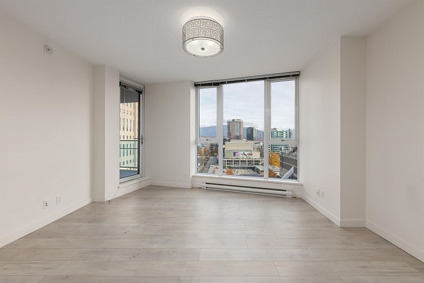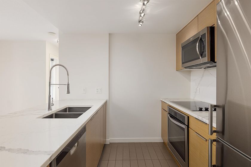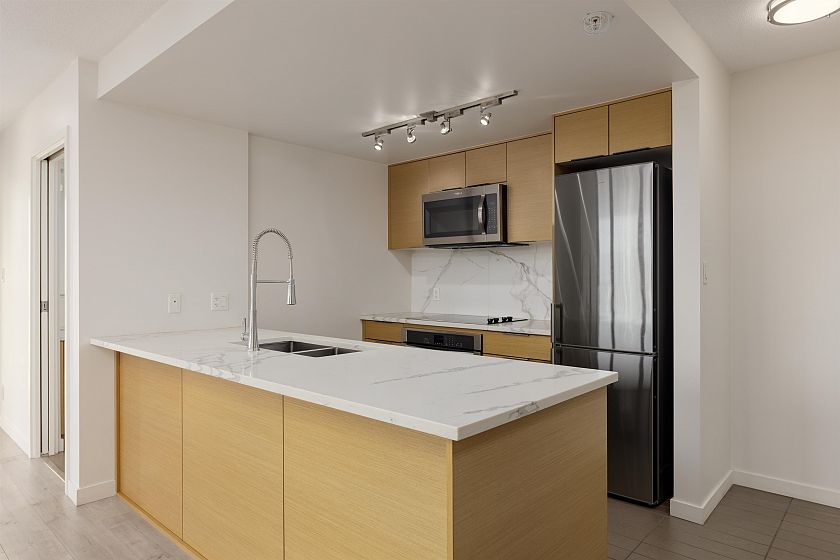 Exceptional high floor corner unit. Spacious residence with outstanding floor plan. Sweeping cityscape outlook with mountain background. Renovated floor, counters, with lux kitchen and bathroom. Expansive covered balcony for your bistro table and chairs. Best centrally located home...walking distance to shopping, restaurants, banks, library, sport facilities and more. Canada Line minutes away. Just move in...kick back...relax and enjoy.