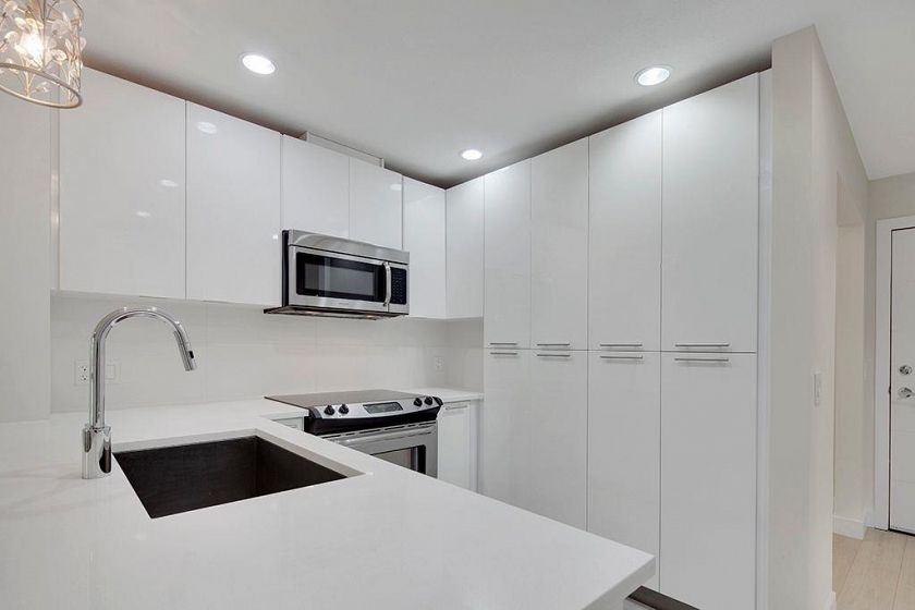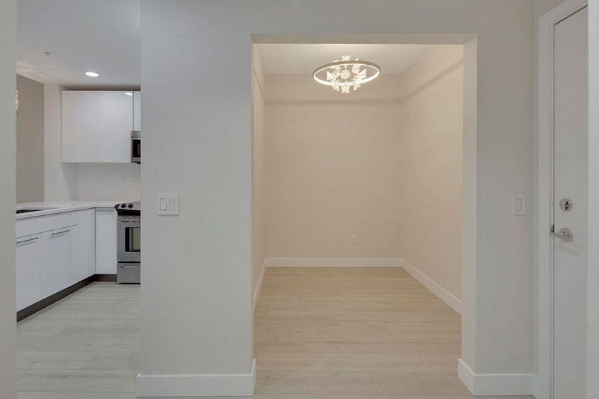 Bright and modern, fully renovated 1-bedroom + spacious den with an open layout and private balcony facing a nice, quiet creek and backing onto a peaceful green space—perfect for year-round privacy & relaxation. Features over-height ceilings, radiant in-floor heating (heating is included into the maintenance fees), wide-plank laminate flooring, quartz counters, and stainless steel appliances. The den is ideal for home office or reading nook. The Shore offers well-equipped gym, party room, yoga studio, playground. Enjoy local favourites like Italian Vomero Coffee House and Thomas Haas just steps away. Walkable location near shops, trails, transit, only 10 minutes to Lonsdale Quay via Spirit Trail. Includes 1 parking, 1 locker. Pets and rentals allowed!