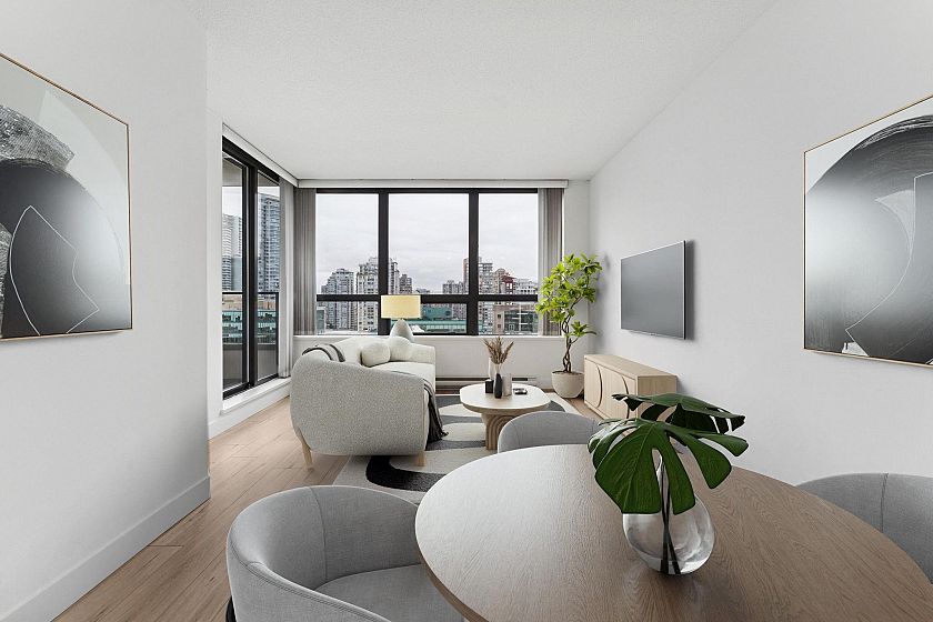 Step into Electric Avenue by Bosa & embrace the ultimate downtown lifestyle. This gorgeous 1 BED+FLEX home features an efficient layout w/laminate flooring, chef’s kitchen w/quartz counters & bar seating & covered balcony w/vibrant OPEN outlook over the law courts & Robson Square. The generous bedroom flows through double closets into a spa-inspired ensuite, while the versatile flex space works beautifully as an office, nursery or smart storage. Enjoy 1 parking & 24hr concierge, 2 rooftop gardens (one w/play area), fitness centre, lounge & theatre. Steps to groceries, dining, shopping on Robson/Alberni/Pacific Centre, SkyTrain & a quick walk to beaches, Yaletown or Coal Harbour. Ideal for a homebuyer or savvy investor. Some photos have been virtually staged