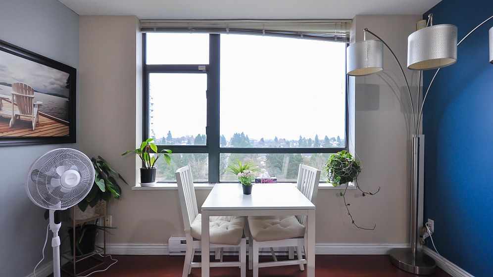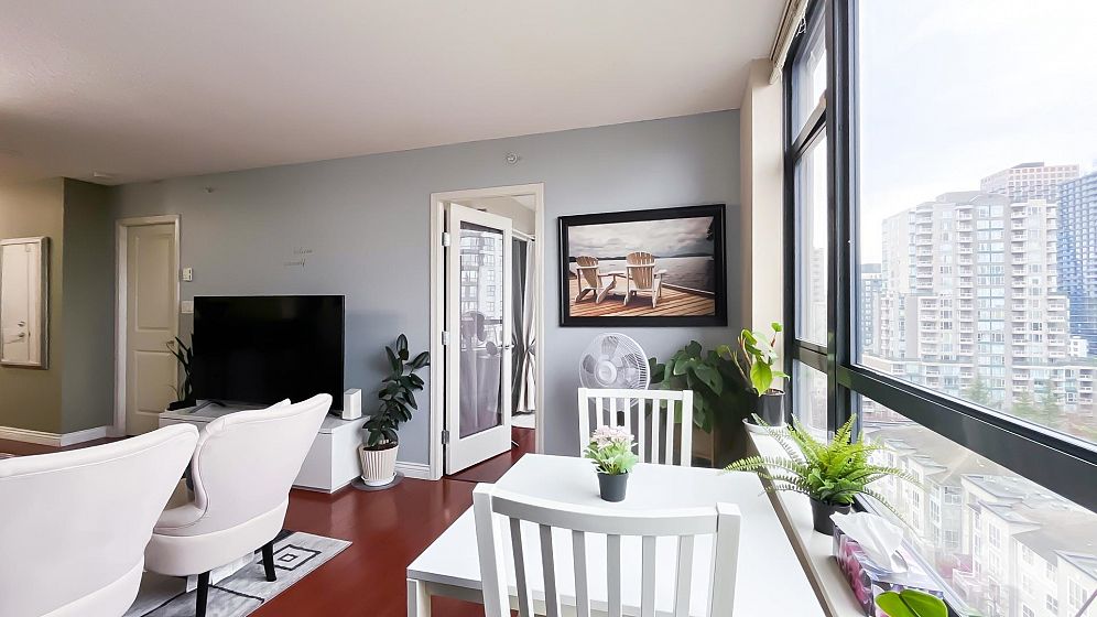 Welcome to Millenio by Bosa in Joyce Collingwoood. This bright 1 bed + den sits high on the 14th floor with sweeping views of Melbourne Park and the mountains. Efficient open layout, large windows, in suite laundry, laminate floors, and a den that is currently being used as a second bedroom. Well kept concrete building with secure parking and locker plus gym, residents lounge, and landscaped garden. Step outside to tennis and basketball courts, nearby parks, and walking paths, or stroll a few minutes to Joyce SkyTrain, restaurants, and everyday essentials. Pet friendly building with rentals allowed, ideal for first time buyers and investors seeking a quiet park side home with easy access to downtown. Easy to show!